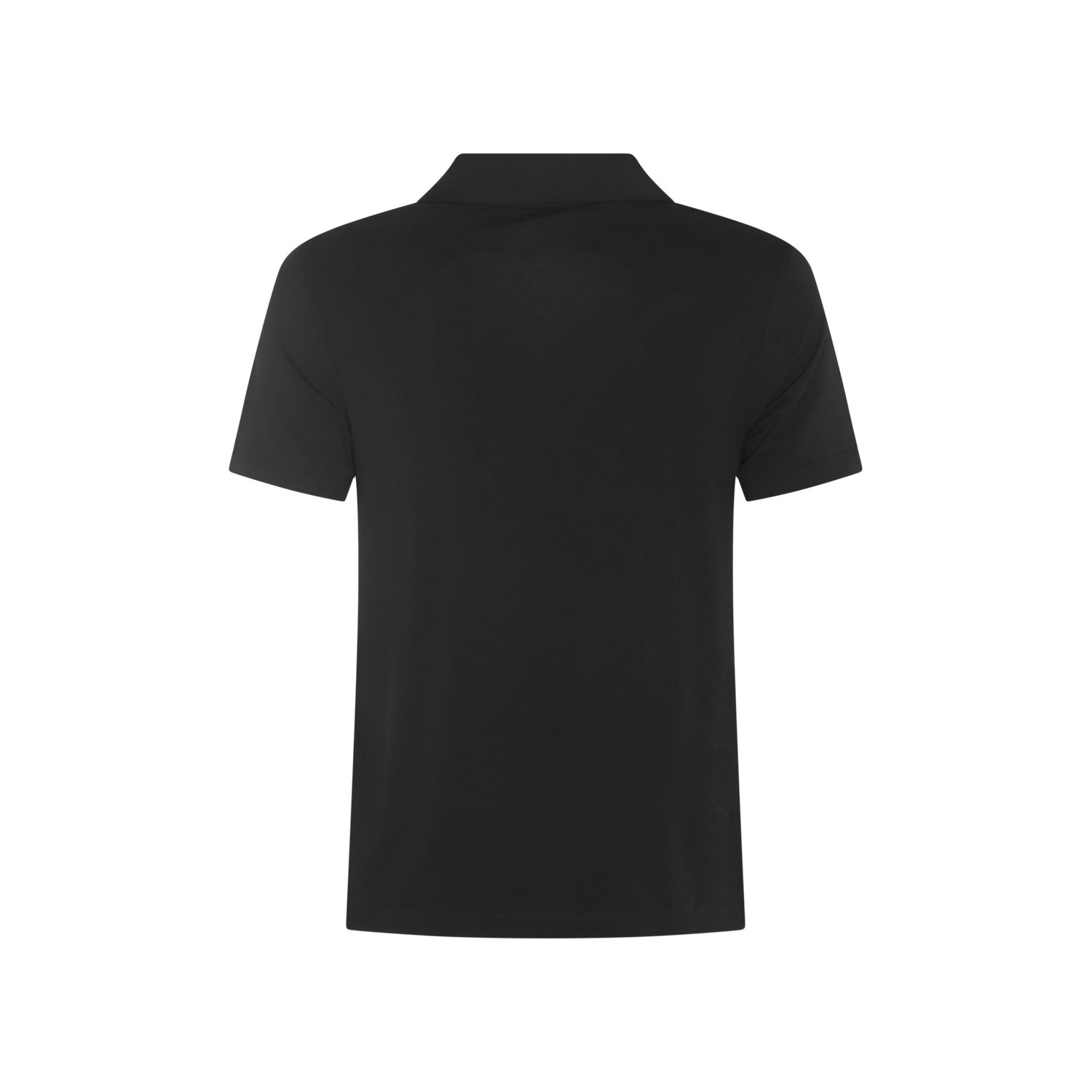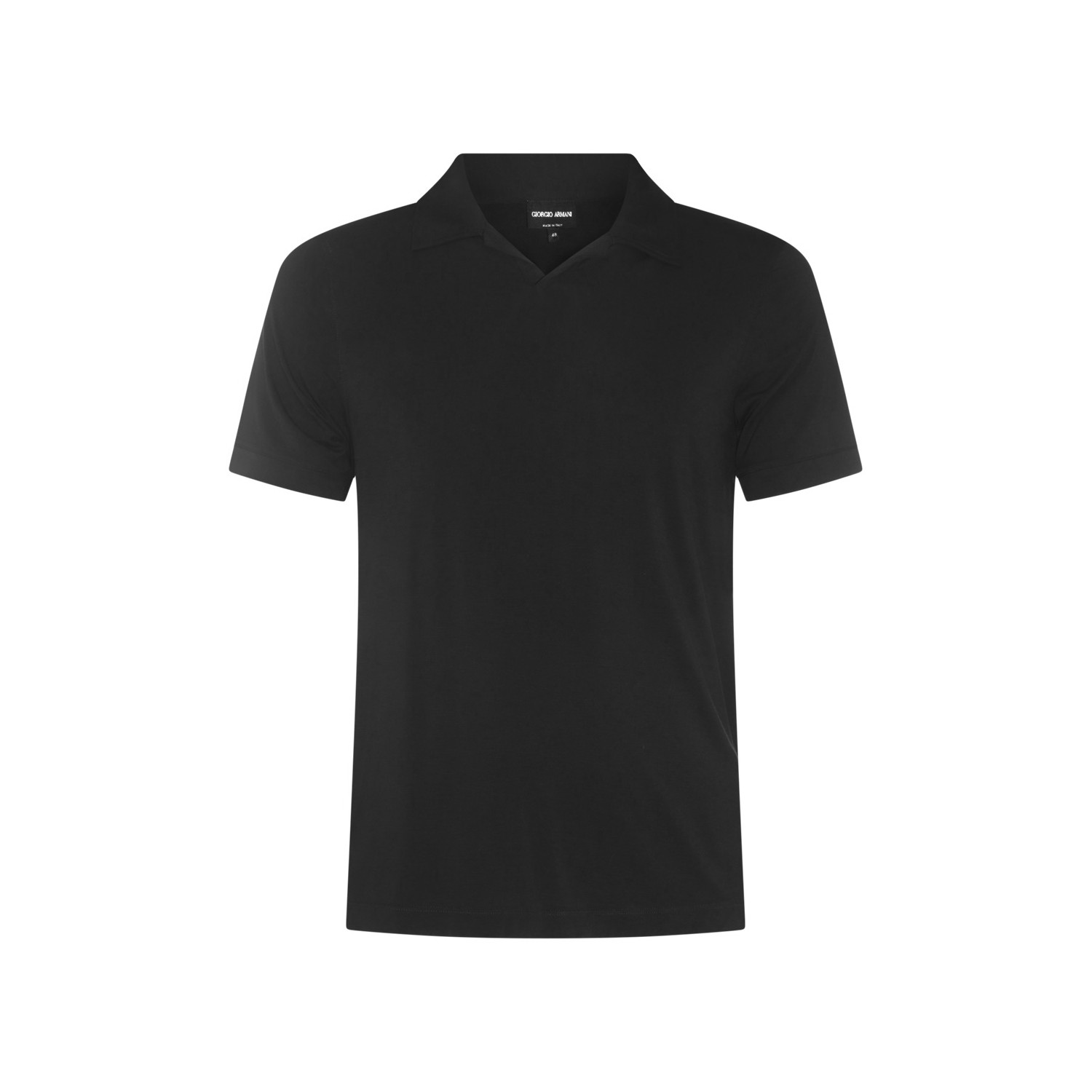 Black cotton polo shirt from Giorgio Armani featuring regular collar, V-neck, short sleeves and soft vestibility.