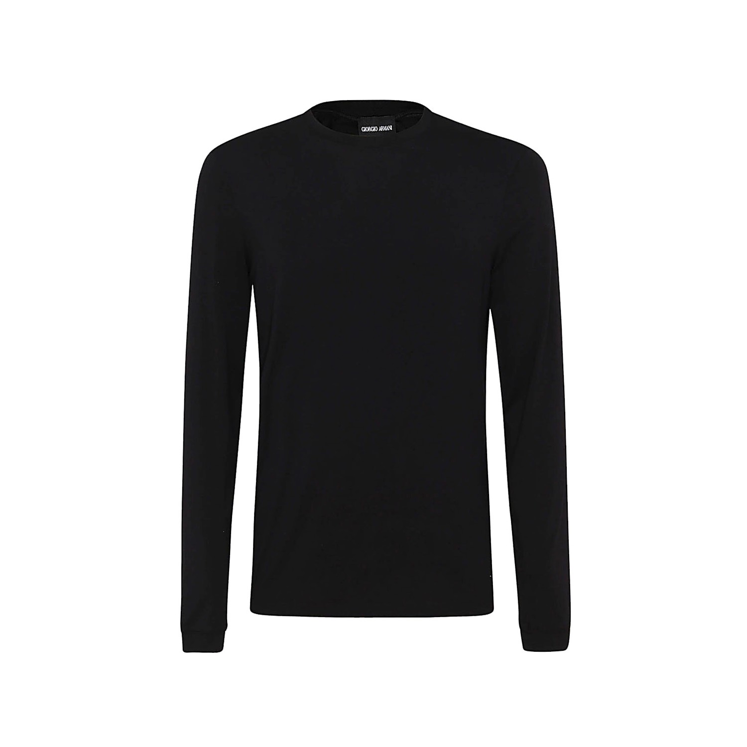Black viscose blend T-shirt featuring a crew neck, long sleeves, relaxed fit and straight hem.