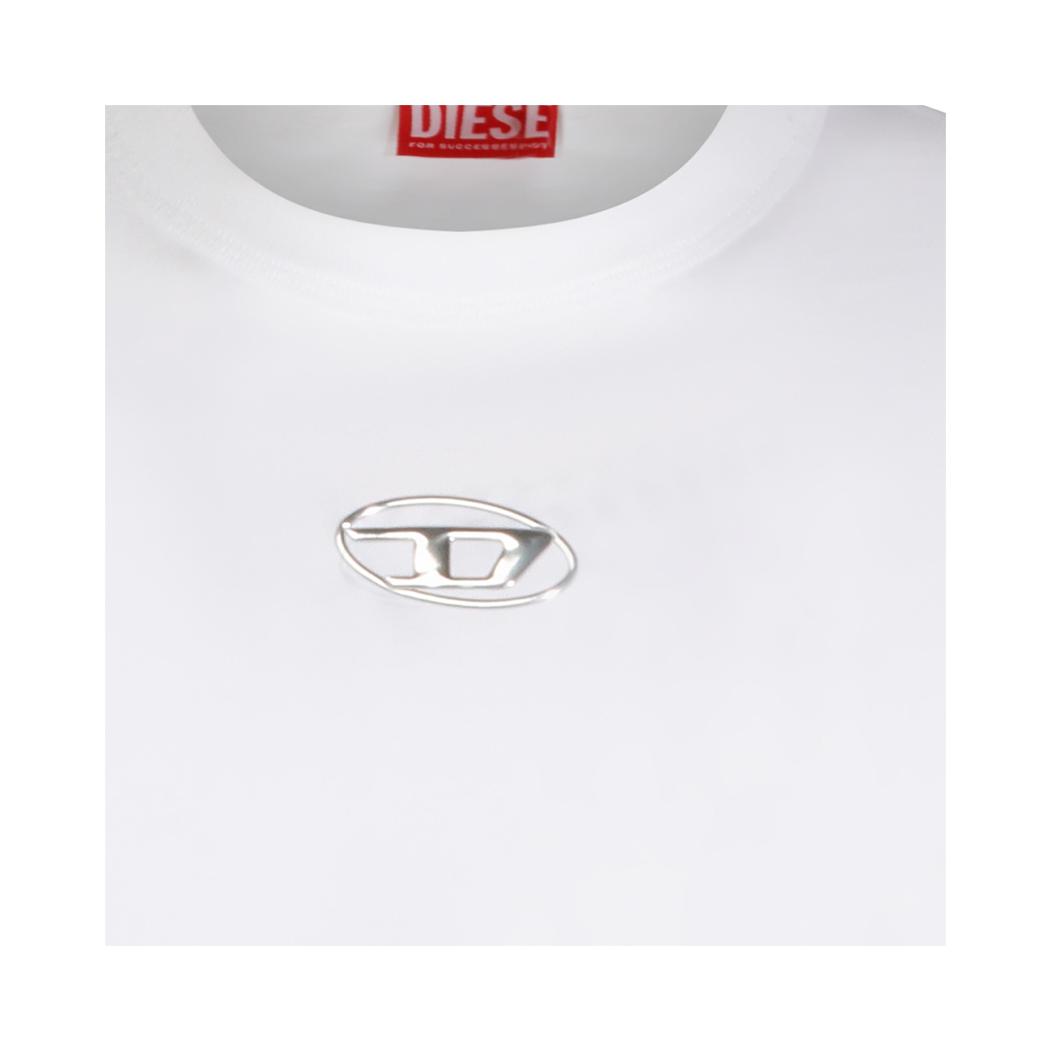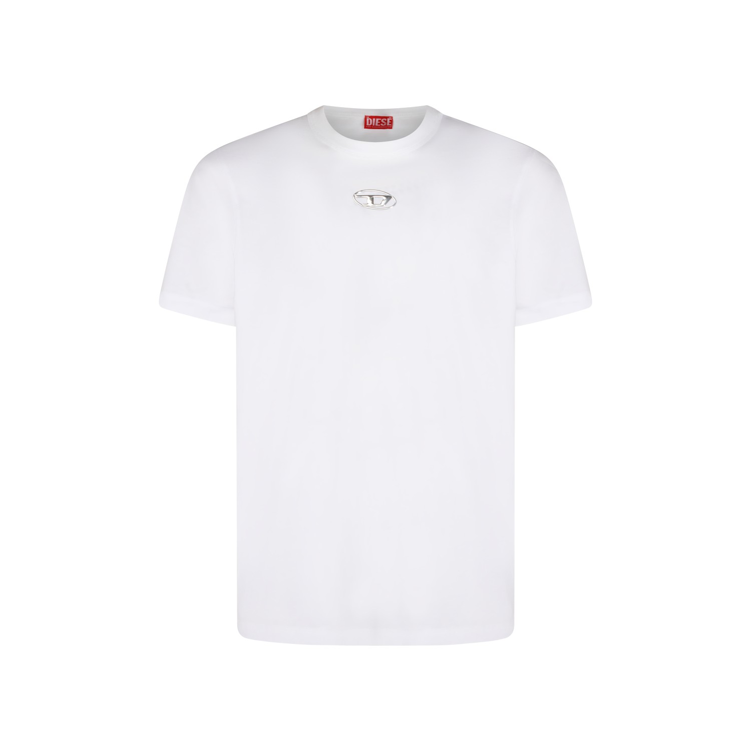 White cotton t-shirt from Diesel featuring crew neck, short sleeves, frontal logo patch and regular vestibility.