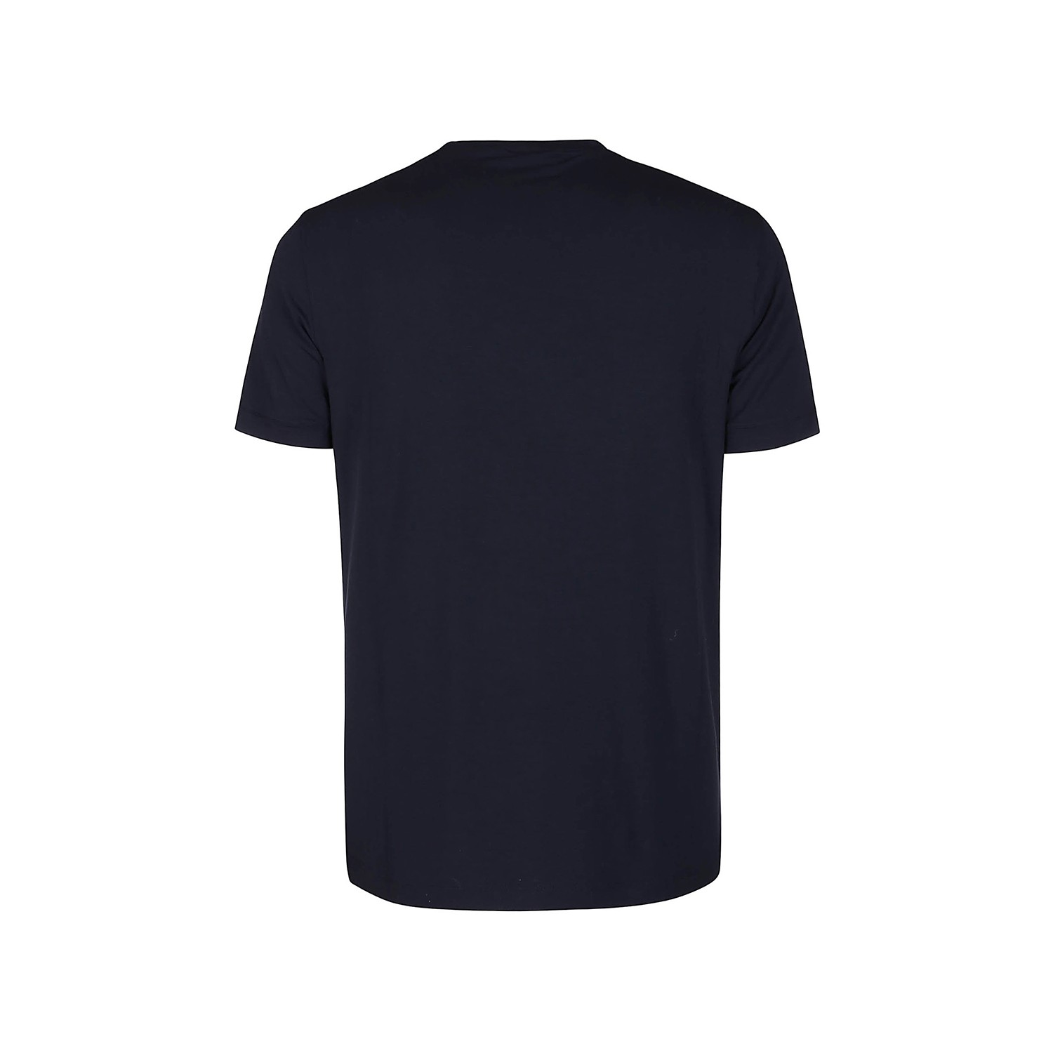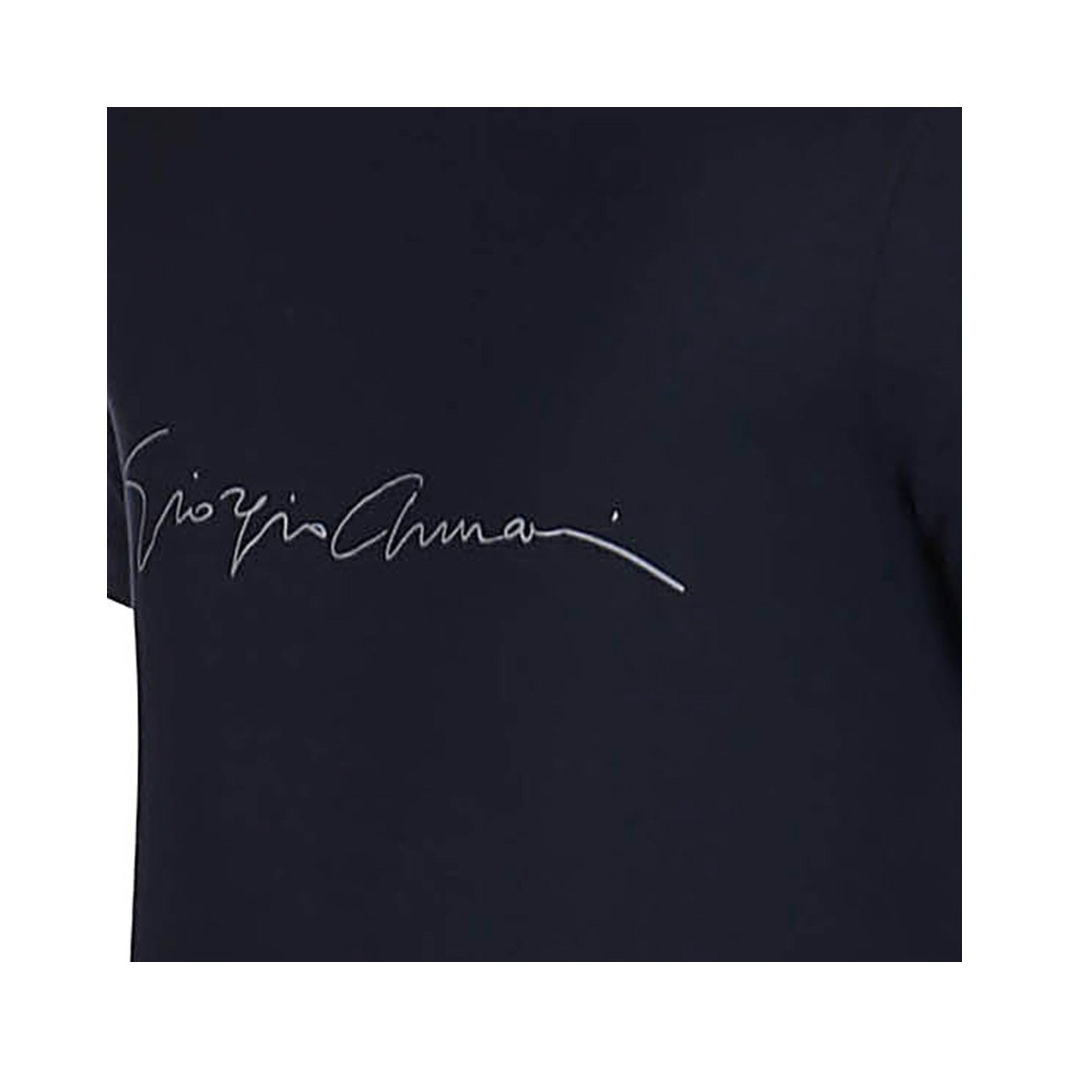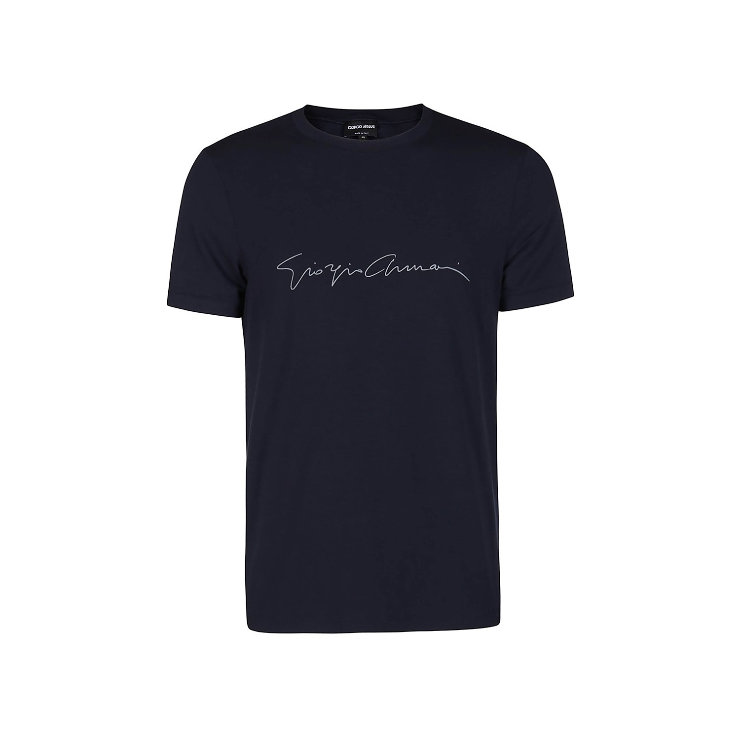 Navy blue cotton T-shirt from Giorgio Armani featuring a crew neck, short sleeves, contrasting logo print to the chest, stratch fit and straight hem.