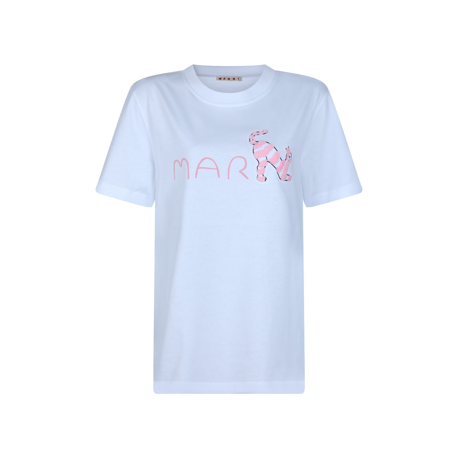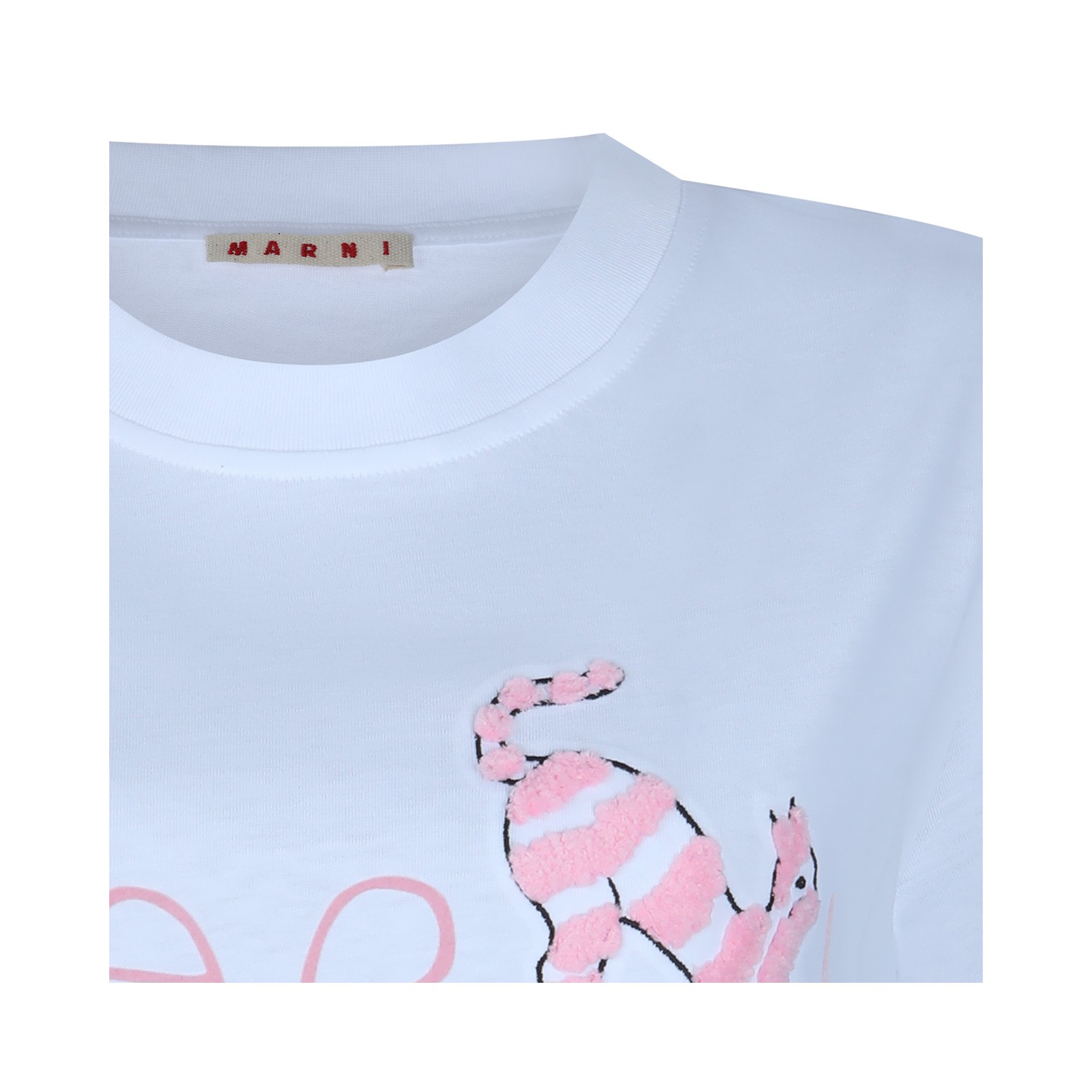 White cotton t-shirt from Marni featuring crew neck, short sleeves, frontal stamp and regular vestibility.