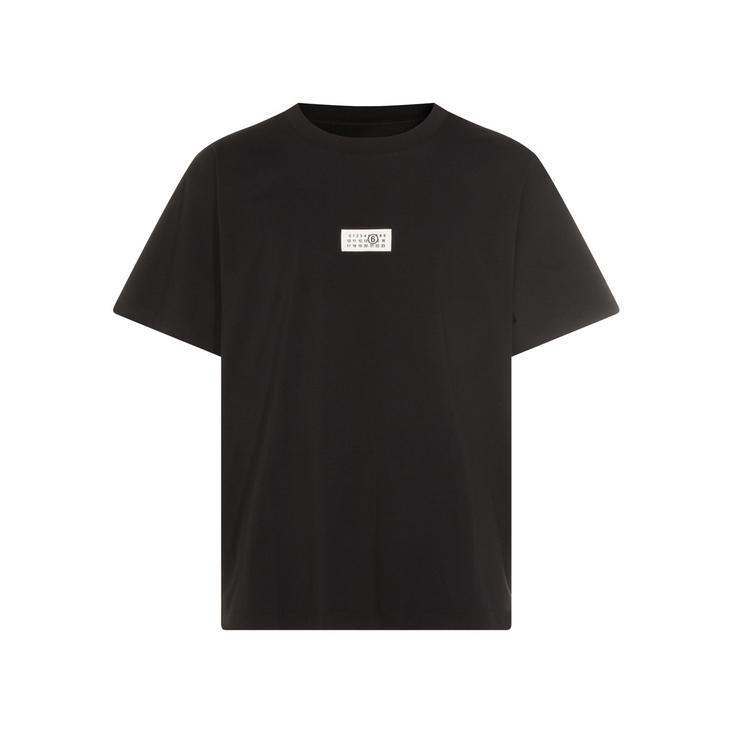 Black cotton t-shirt from MM6 Maison Margiela featuring crew neck, short sleeves, frontal logo patch and regular vestibility.