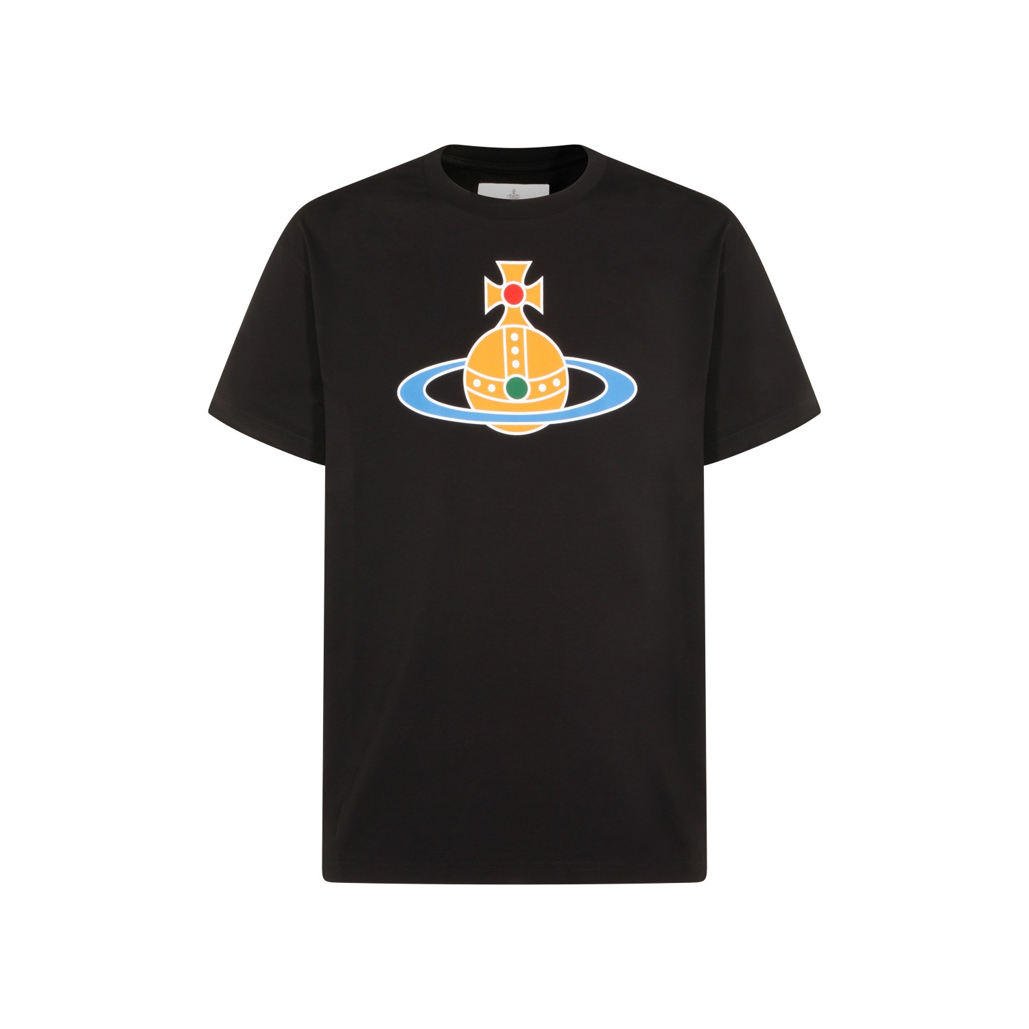Black cotton t-shirt from Vivienne Westwood featuring crew neck, short sleeves, frontal logo stamp and regular vestibility.