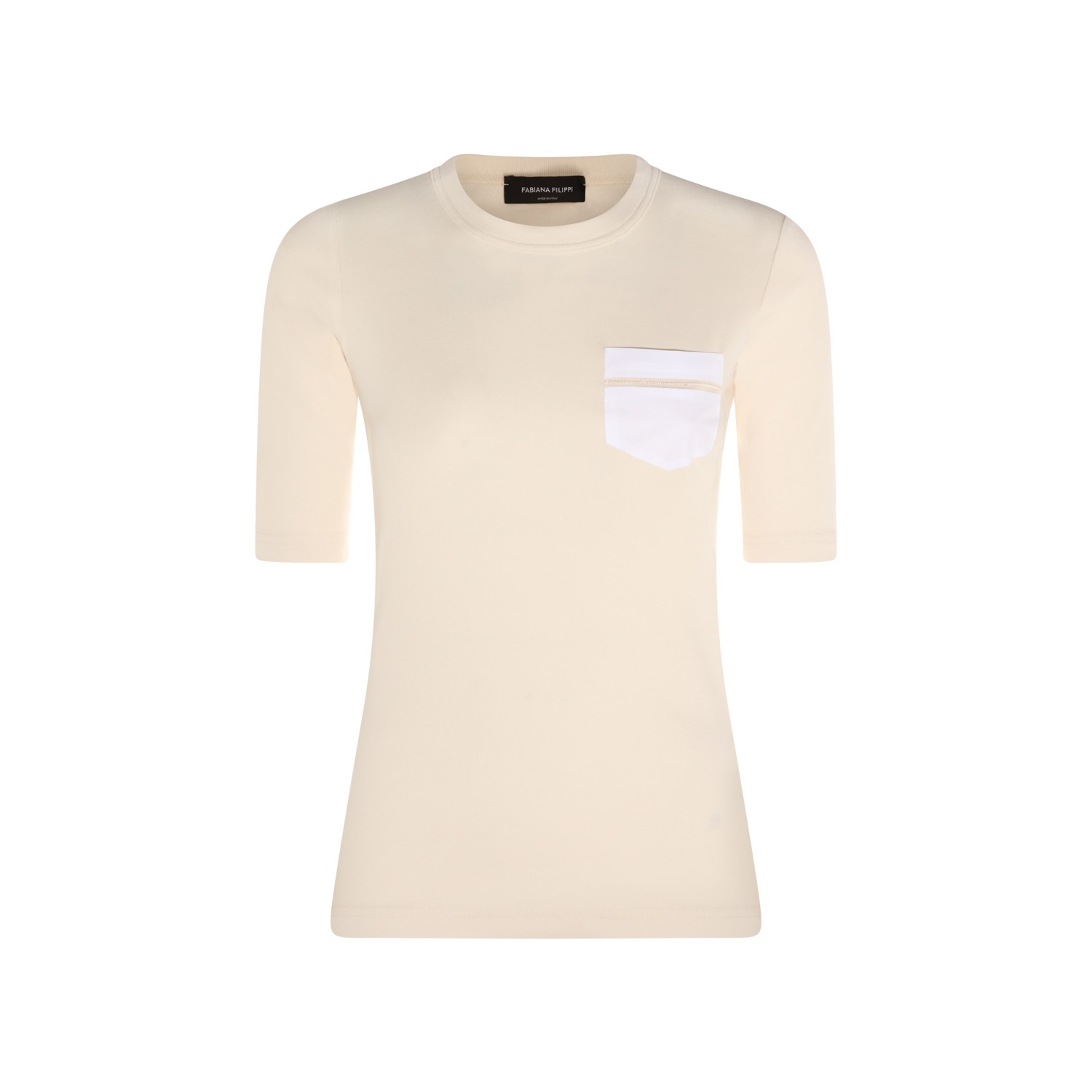 White cotton t-shirt from Fabiana Filippi featuring crew neck, short sleeves, pocket and regular vestibility.