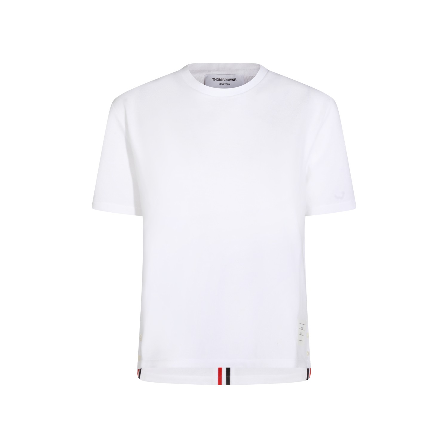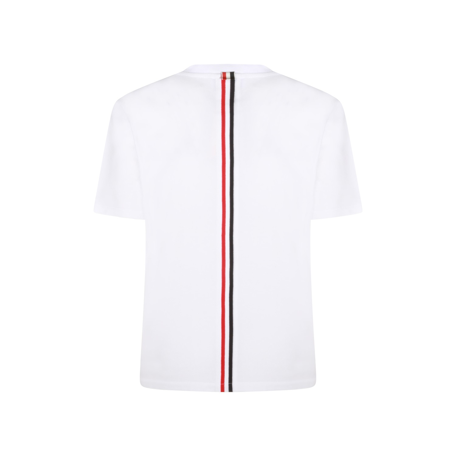 White cotton t-shirt from Thom Browne featuring crew neck, short sleeves and regular vestibility.