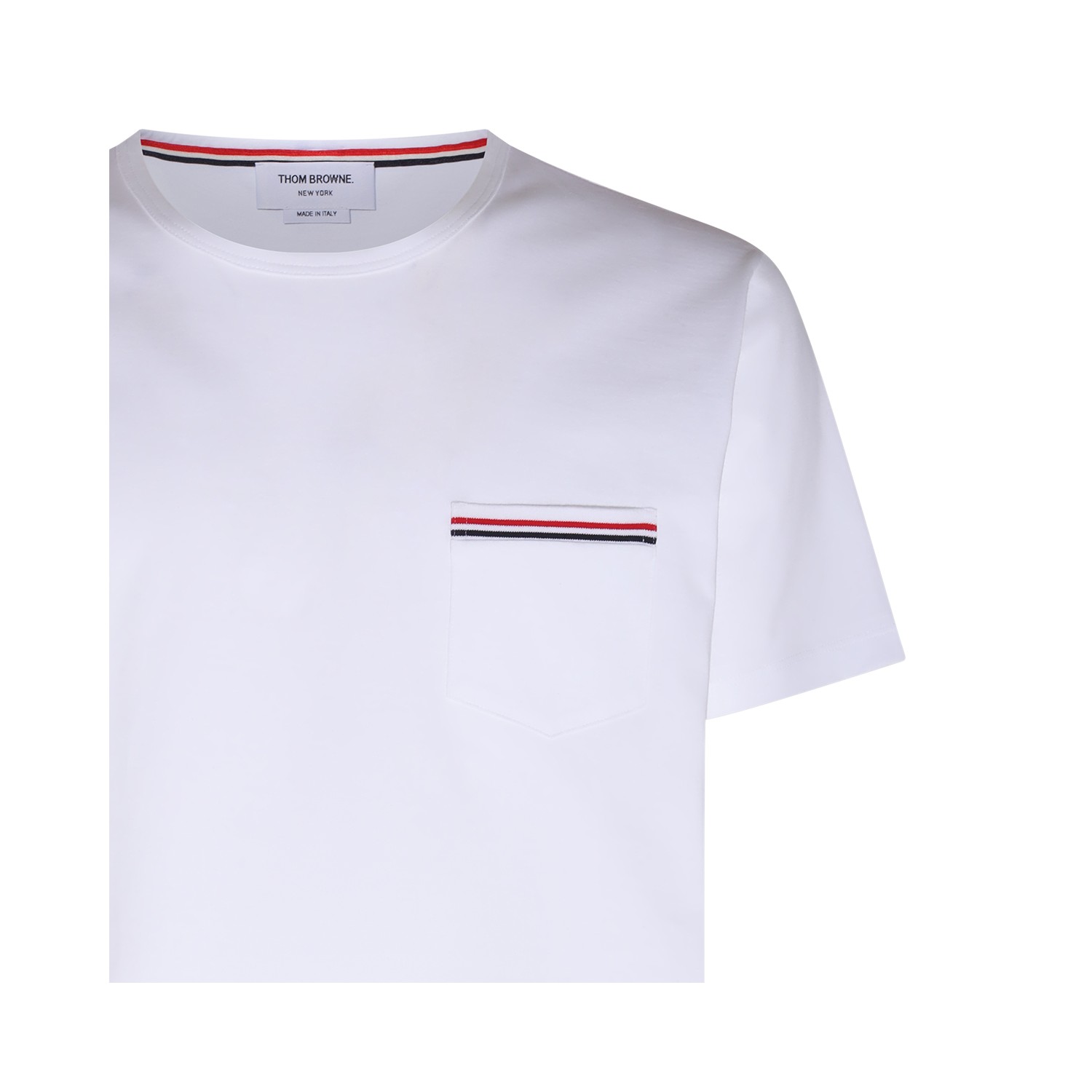 White cotton T-shirt from Thom Browne featuring Rwb pocket trim, crew neck, short sleeves and straight hem.