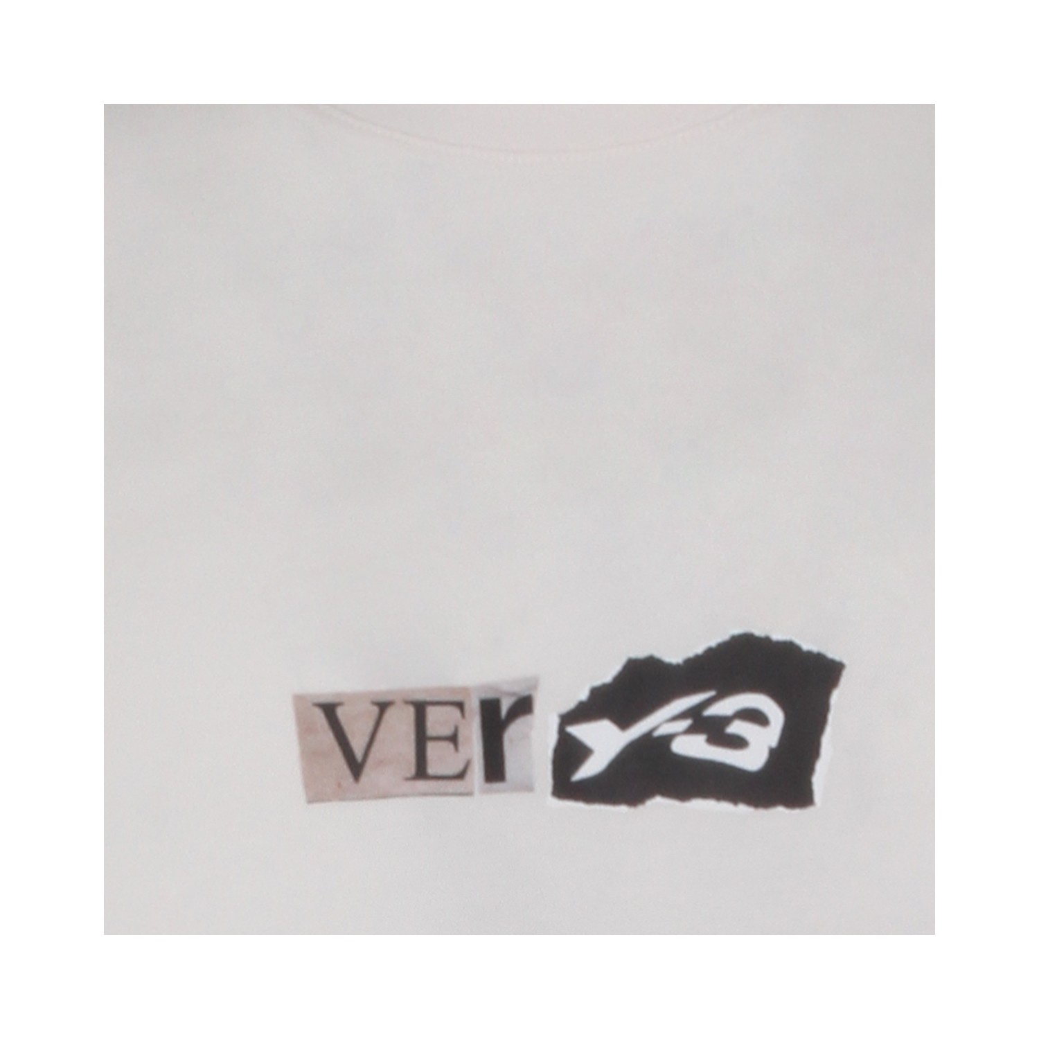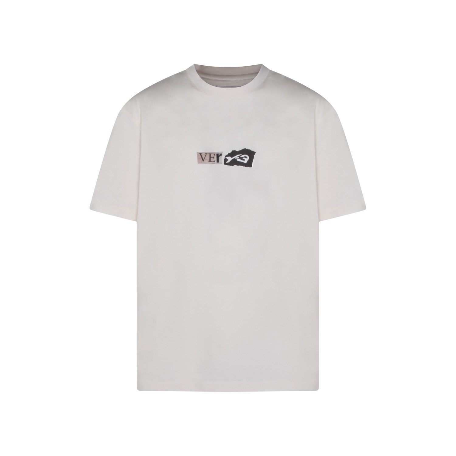 Chalk white cotton T-shirt from Adidas Y-3 featuring round neck, short sleeves, regular fit and print at front.