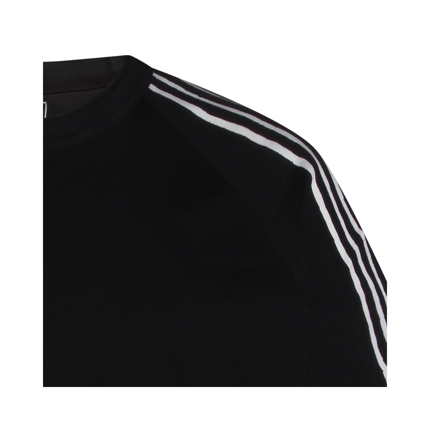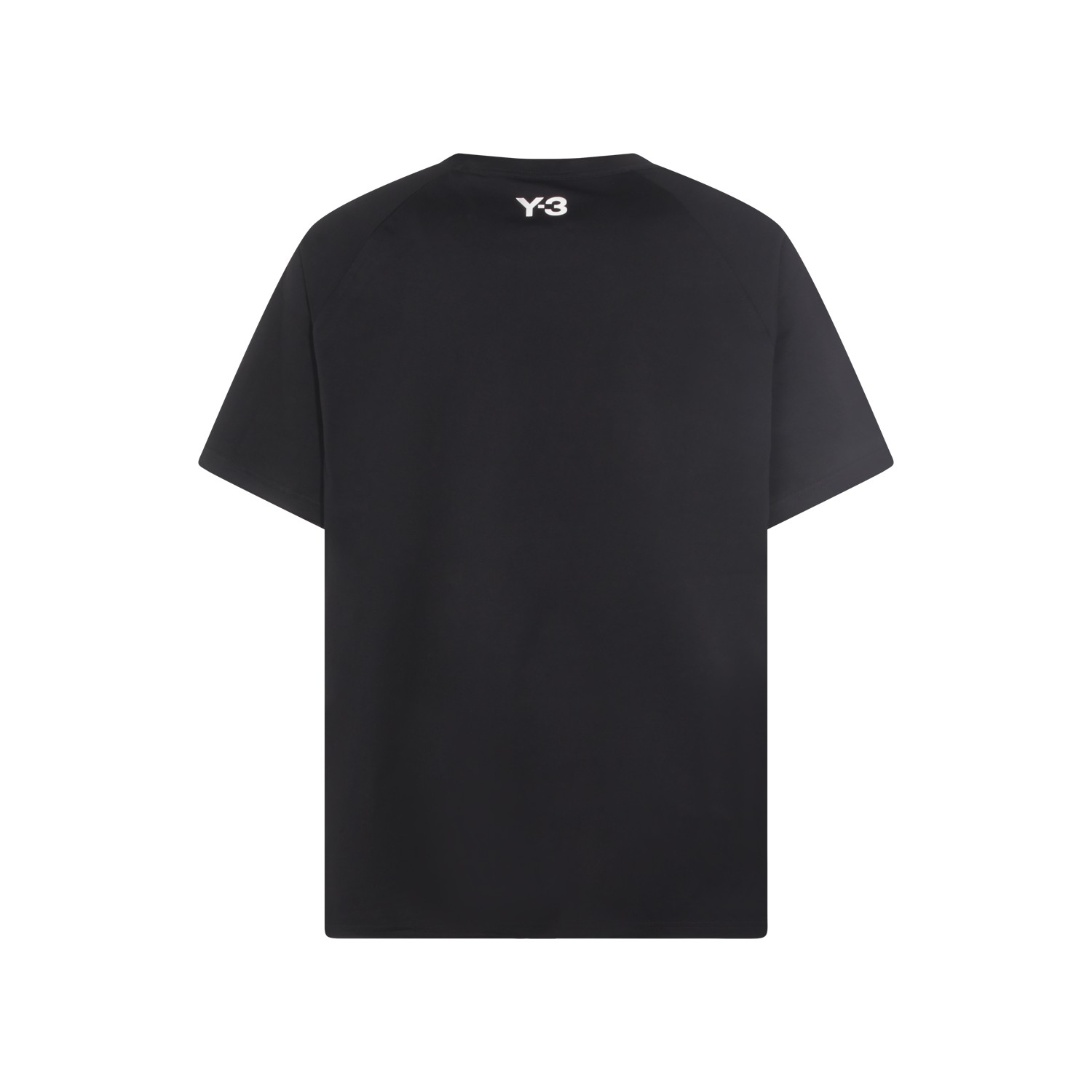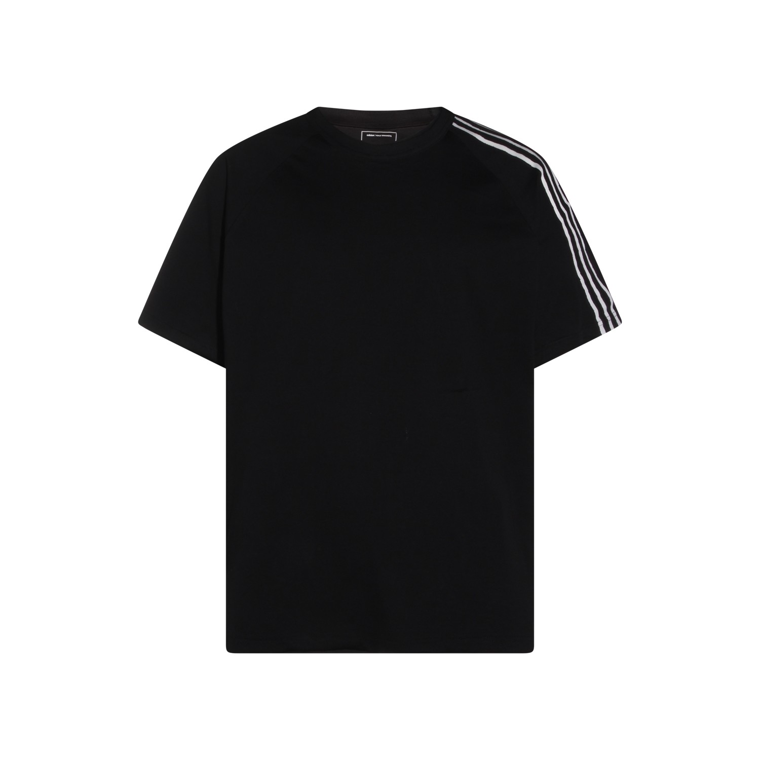 Black cotton Three Stripes T-shirt from Adidas Y-3 featuring short sleeves, regular fit, round neck and Three Stripes print detail.