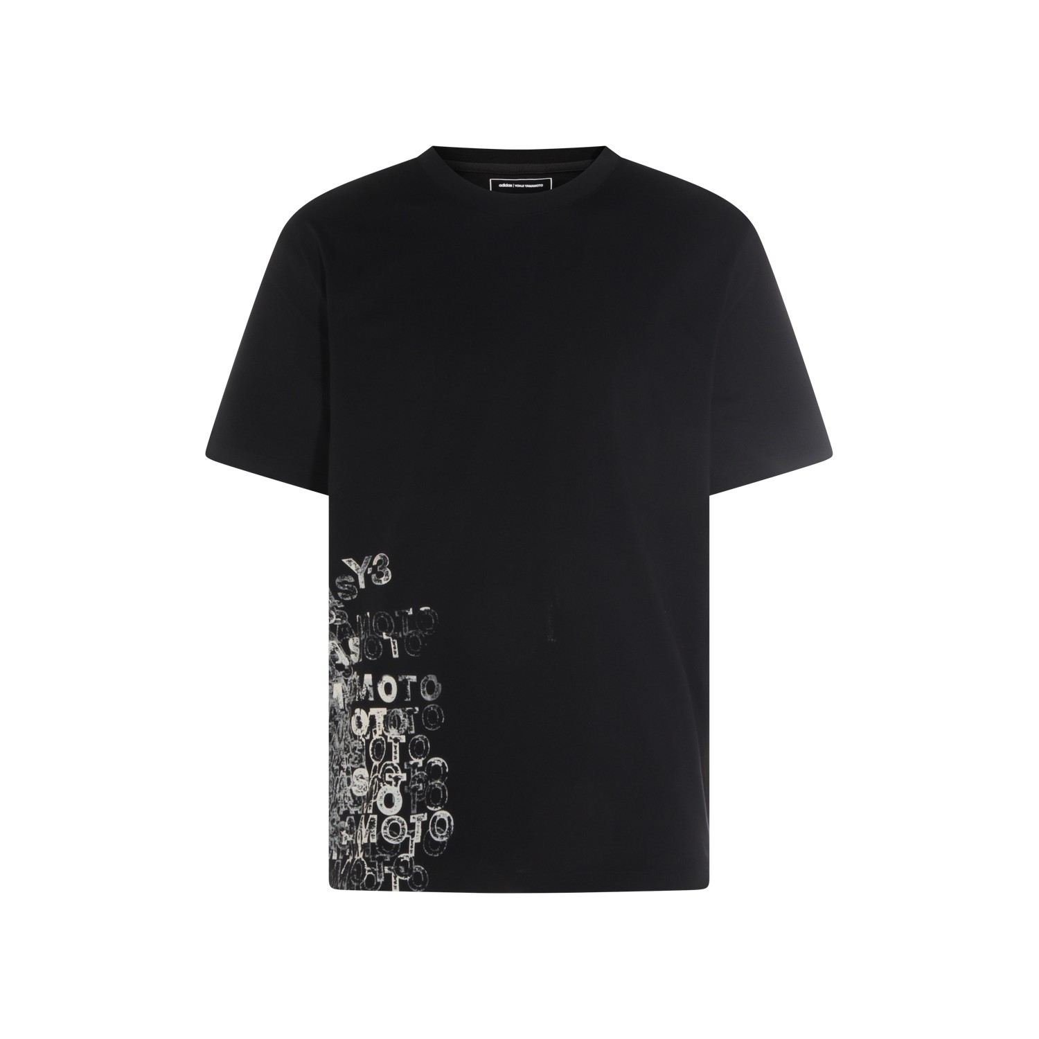 Black cotton T-shirt from Adidas Y-3 featuring short sleeves, round neck, regular fit and printed details at side.