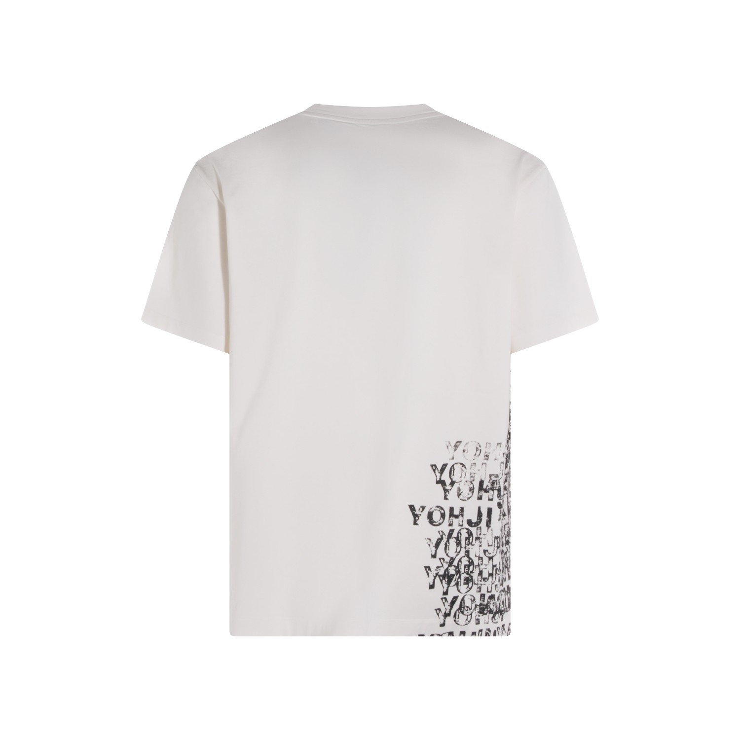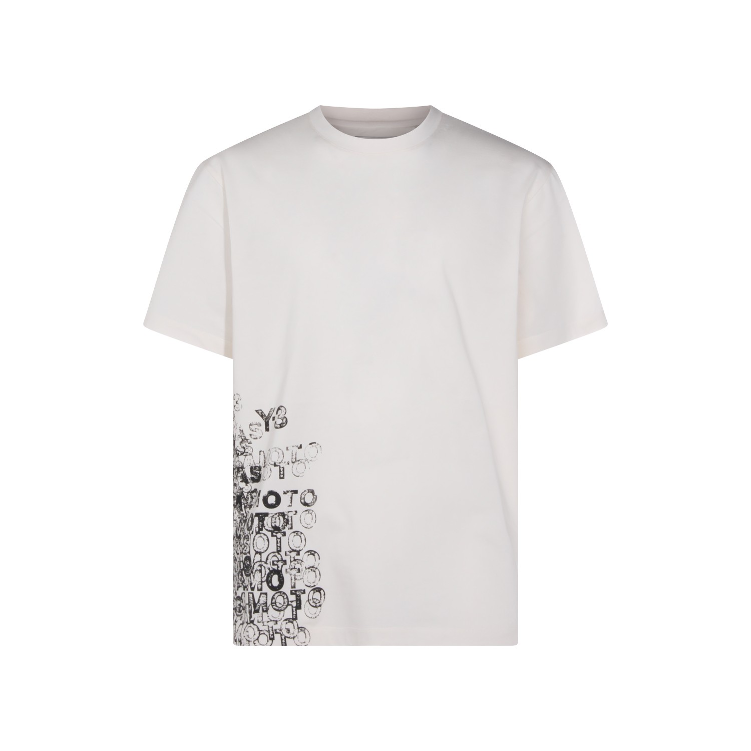 Chalk white cotton T-shirt from Adidas Y-3 featuring round neck, short sleeves, straight hem and print details at side.