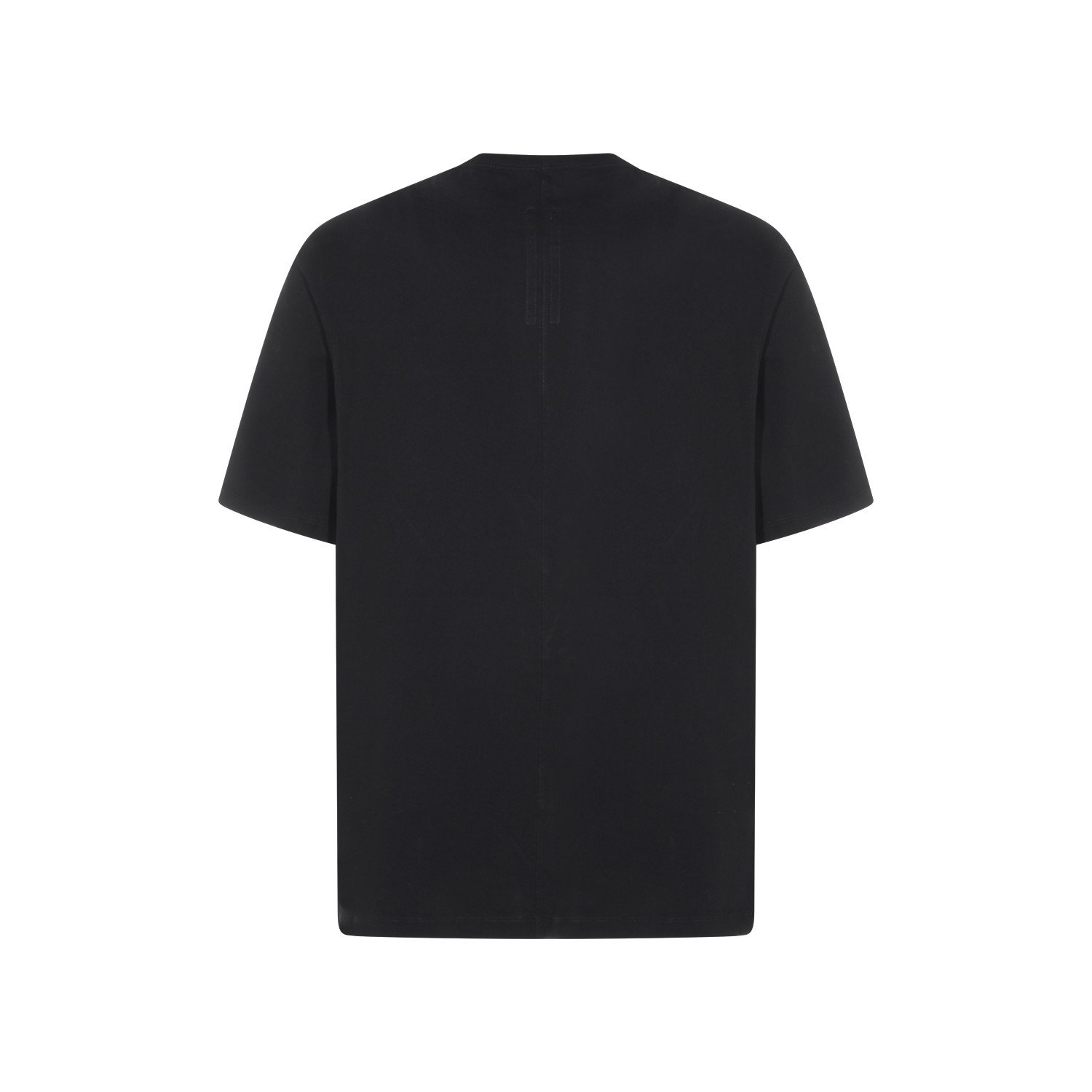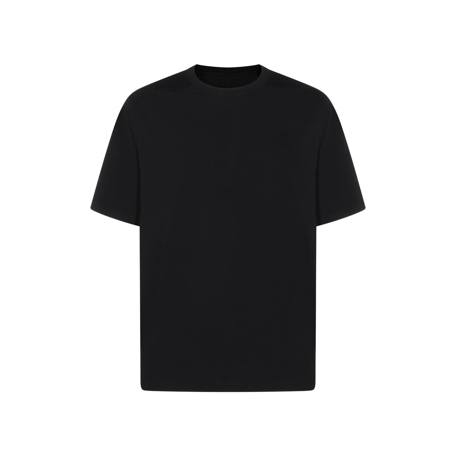 Black cotton t-shirt from Rick Owens featuring round collar, short sleeves and oversize vestibility.