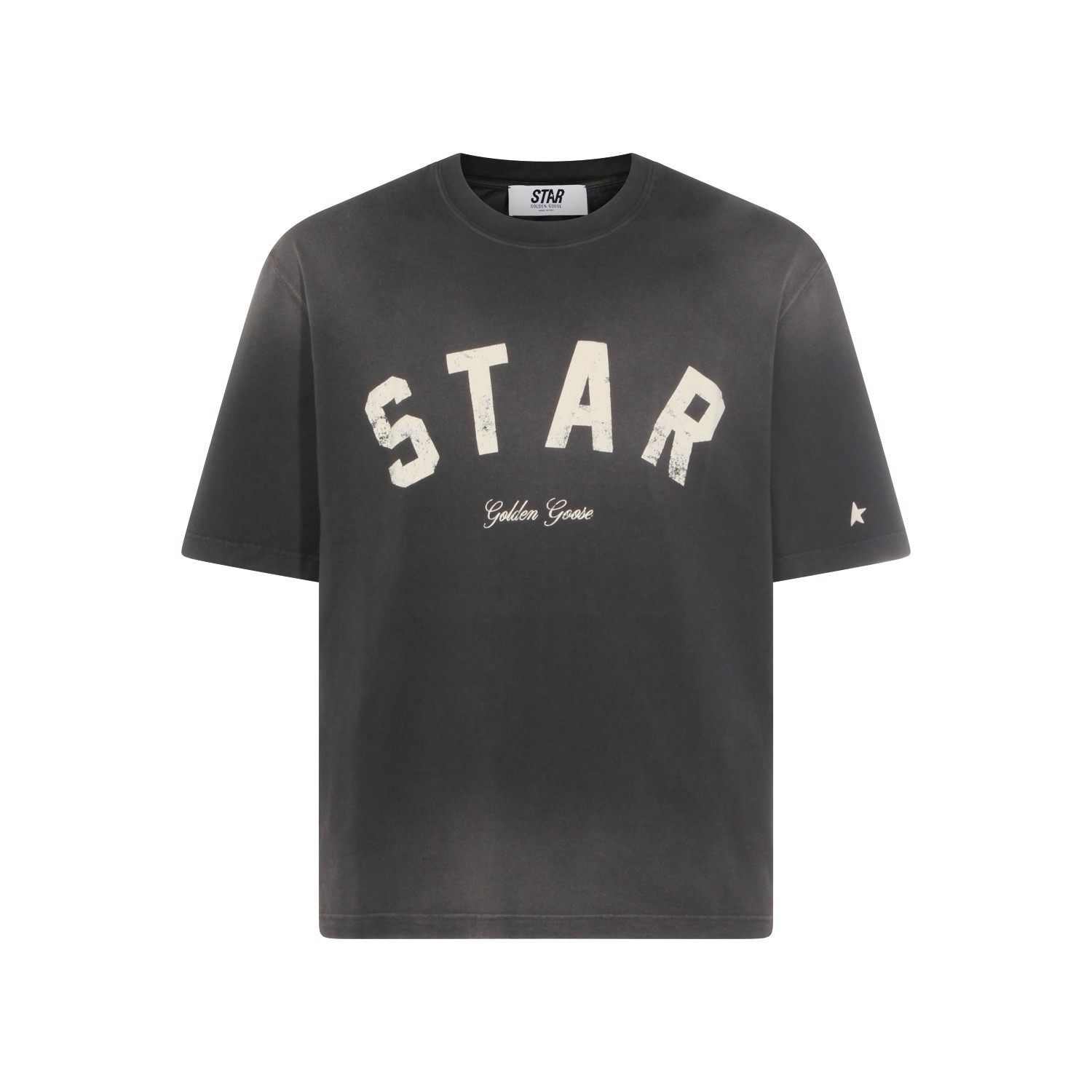 Dark grey cotton t-shirt from Golden Goose featuring round collar, short sleeves and frontal logo print.