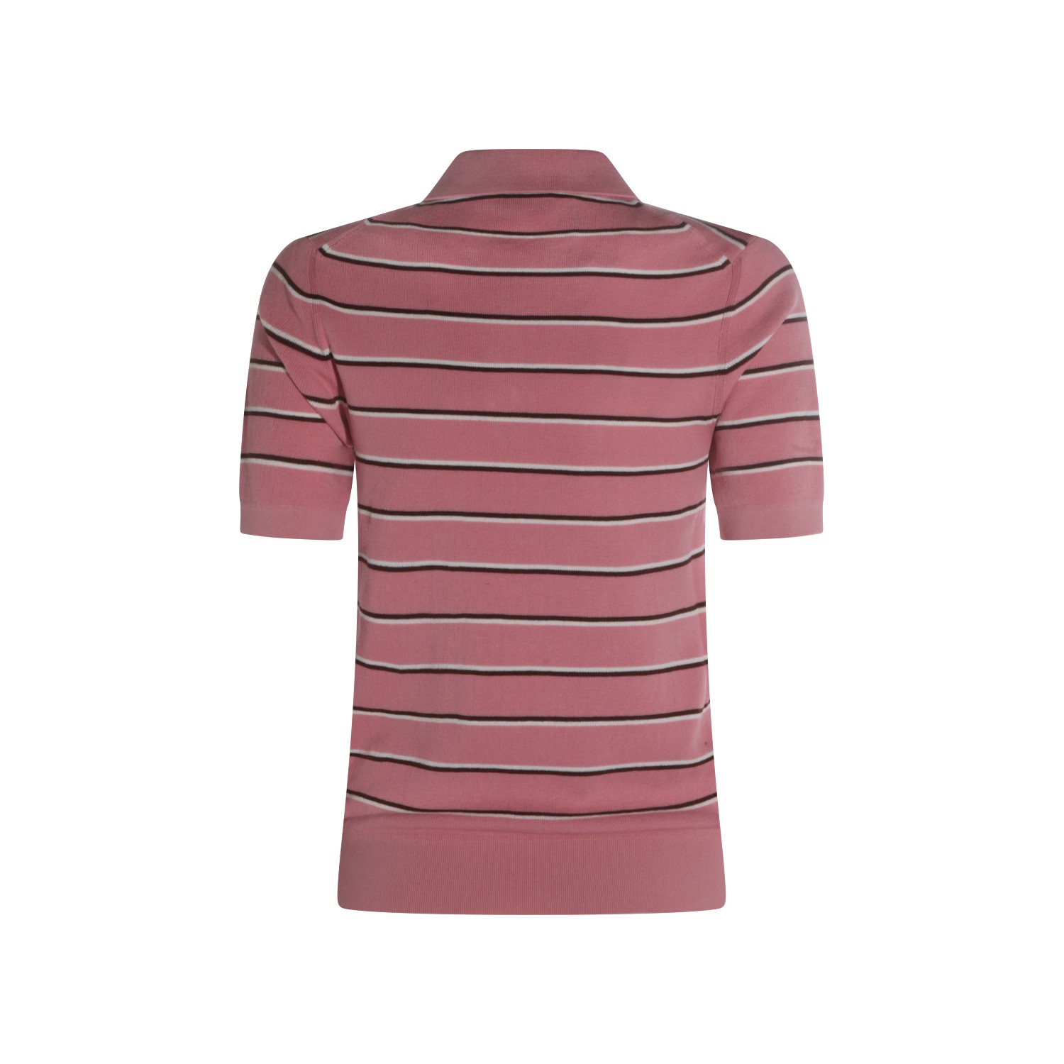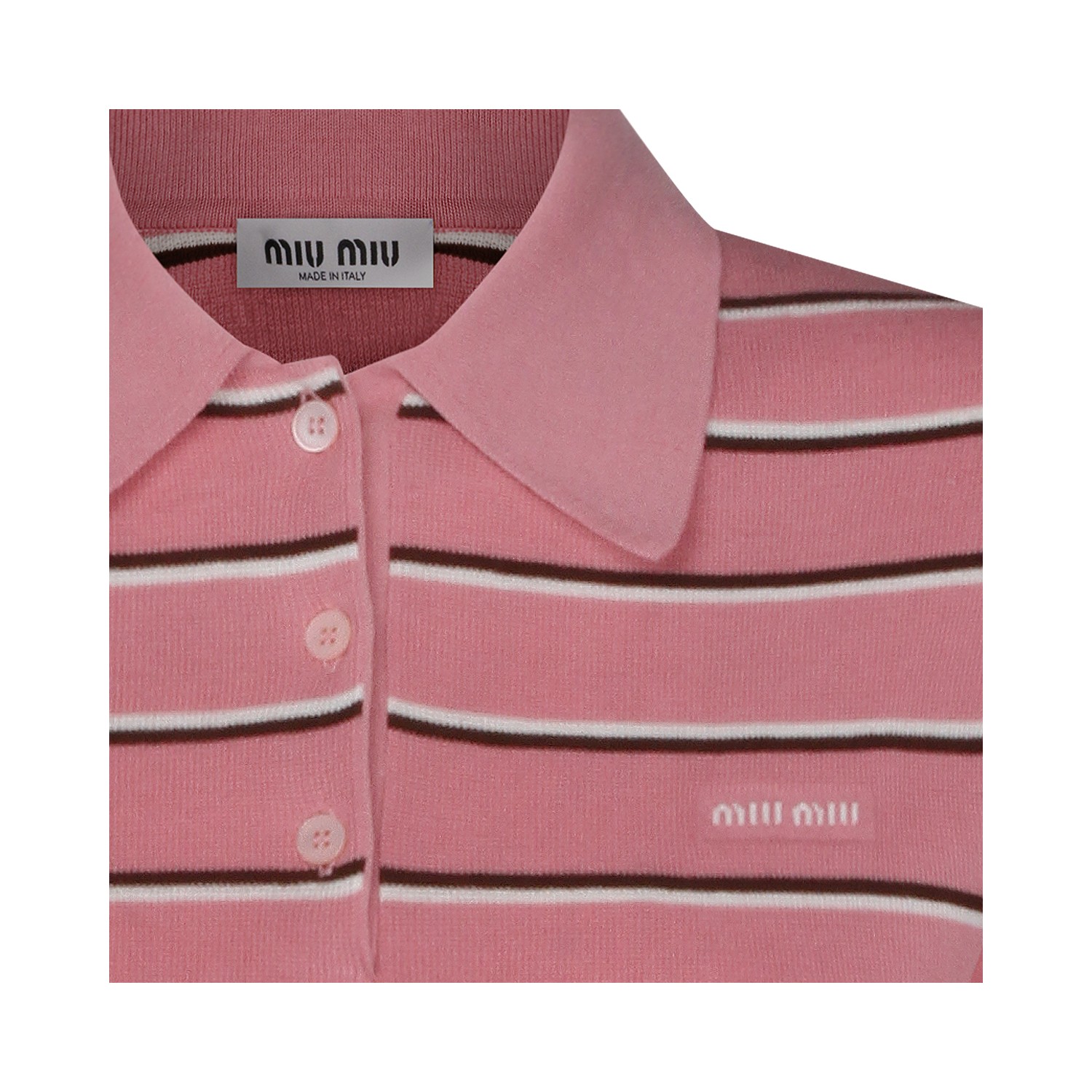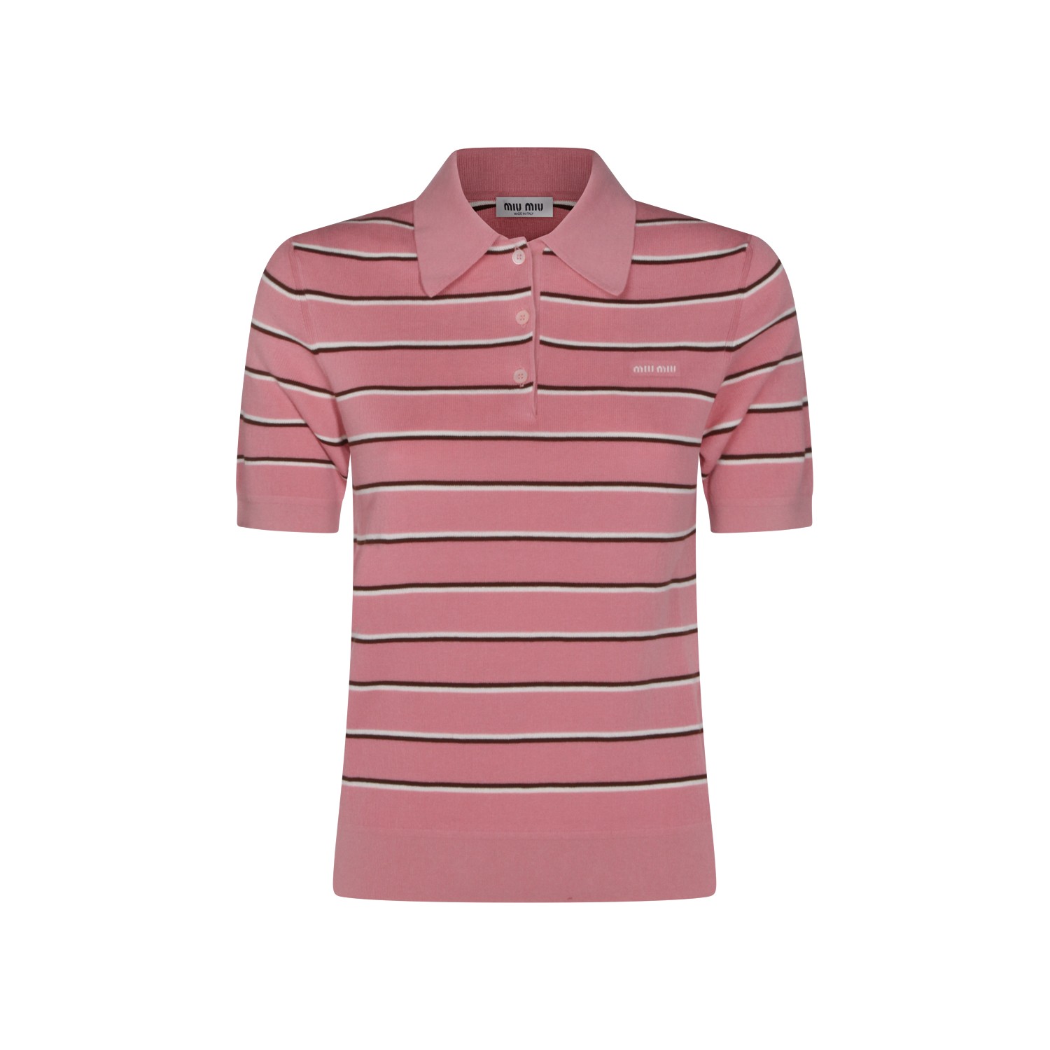 Pink cotton polo shirt from Miu Miu featuring regular collar, buttons fastening, short sleeves, all-over stripes, frontal logo and regular vestibility.