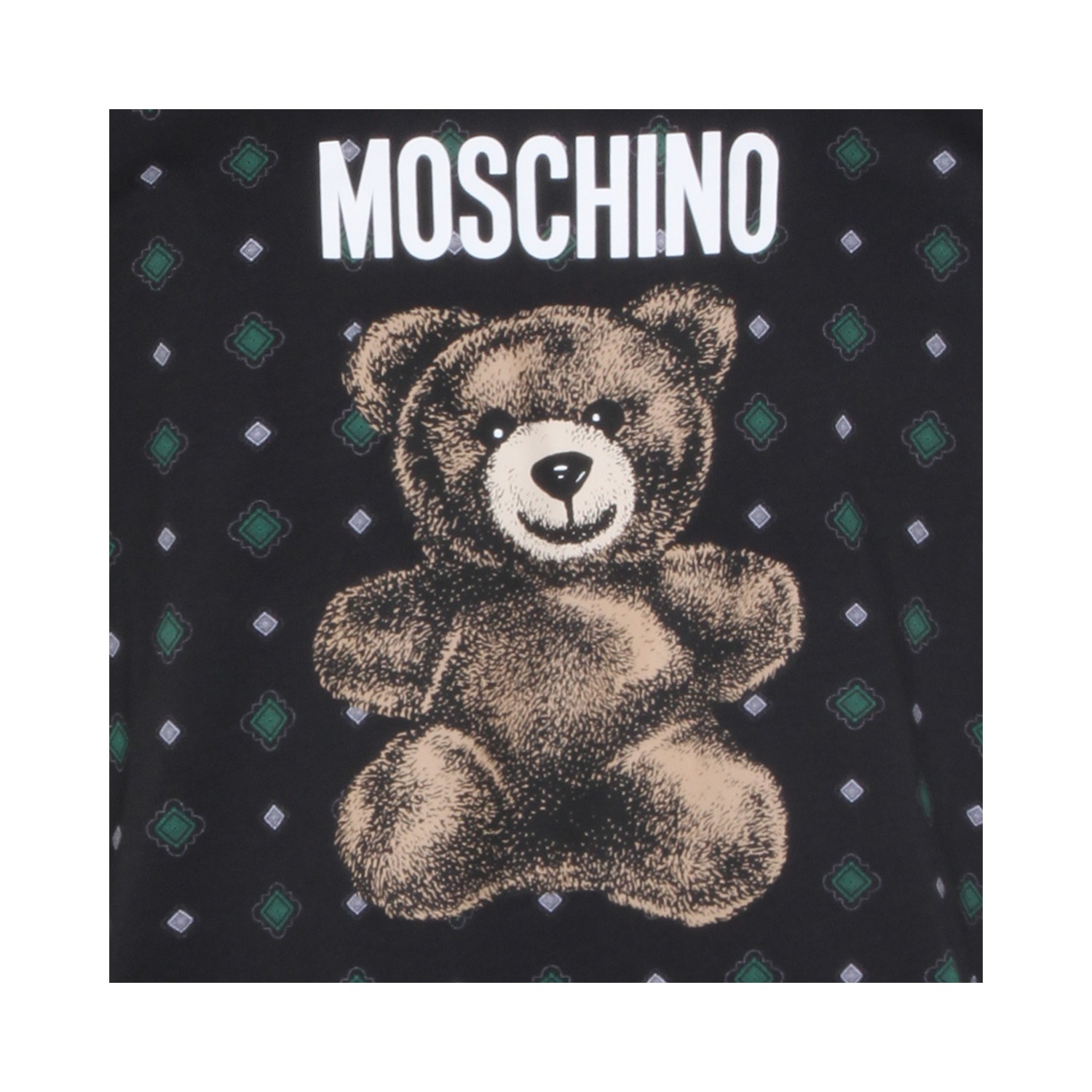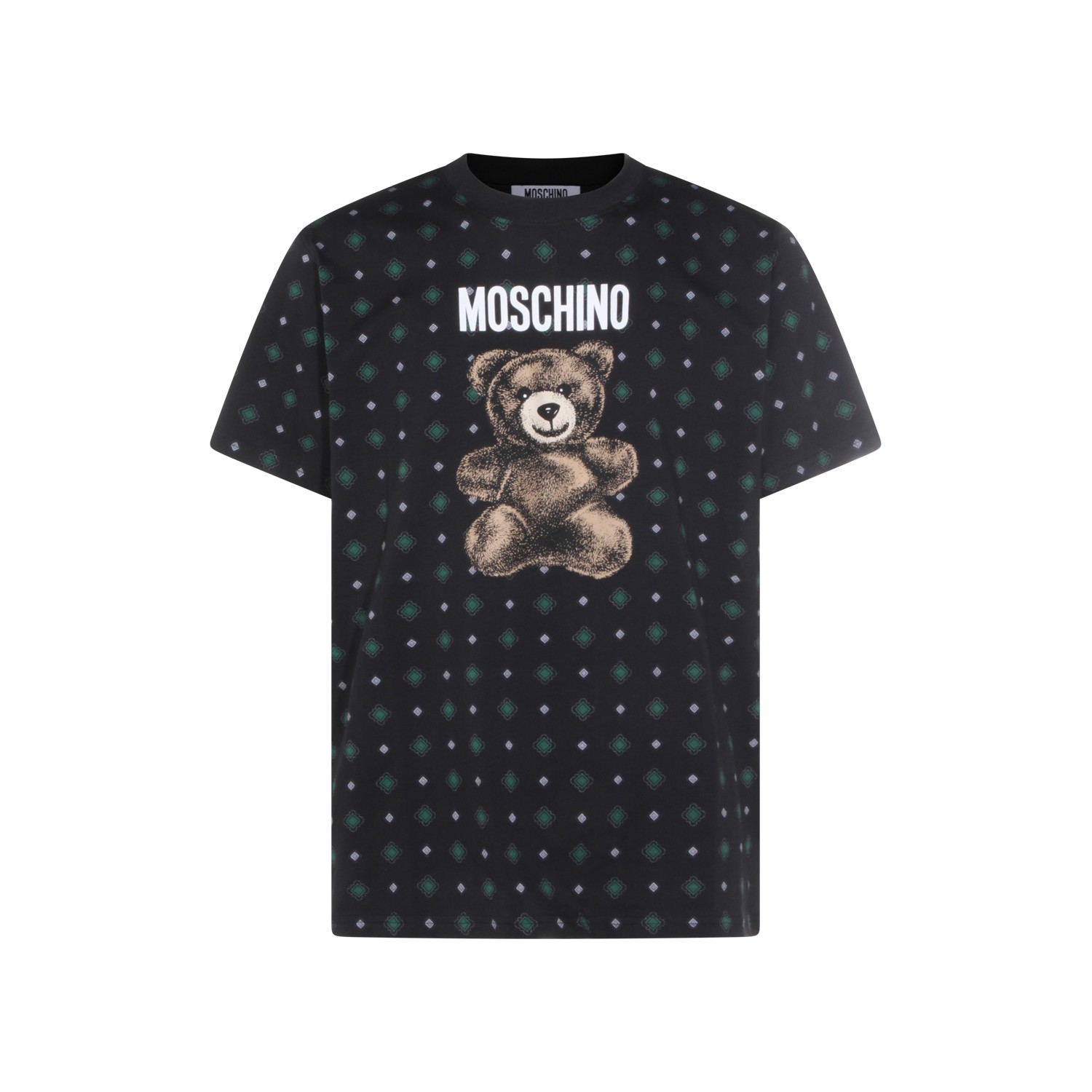 Black cotton t-shirt from Moschino featuring crew neck, short sleeves, frontal stamp and regular vestibility.