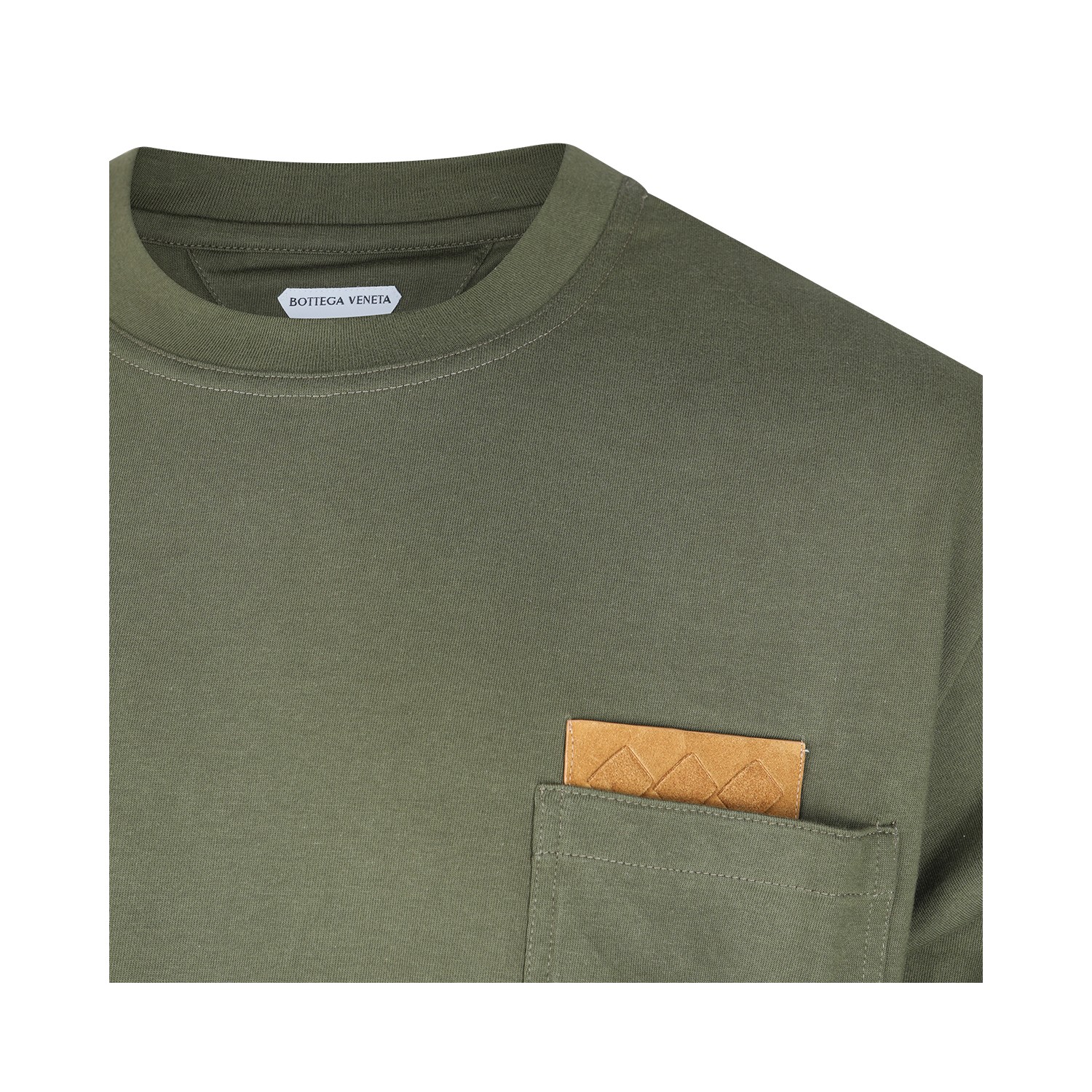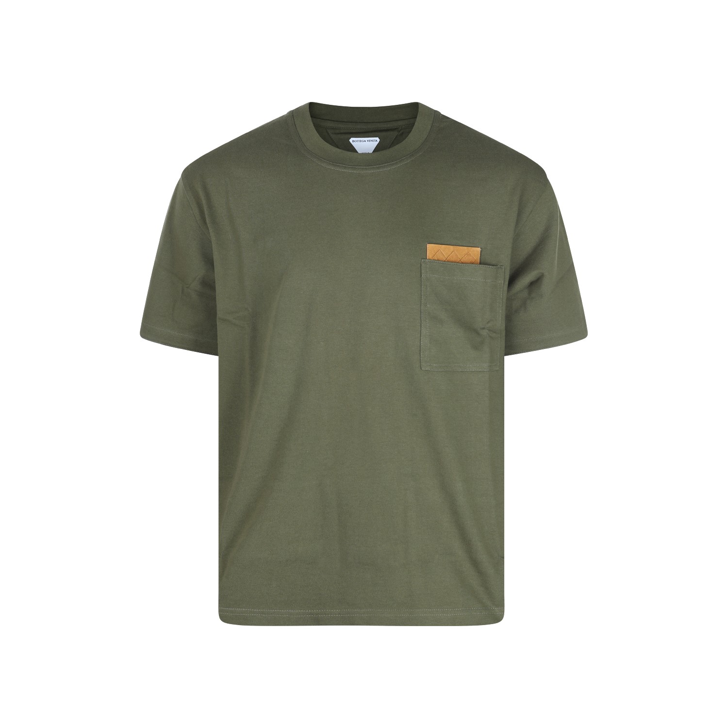 Green cotton T-shirt from Bottega Veneta featuring round collar, short sleeves, pocket and regular vestibility.