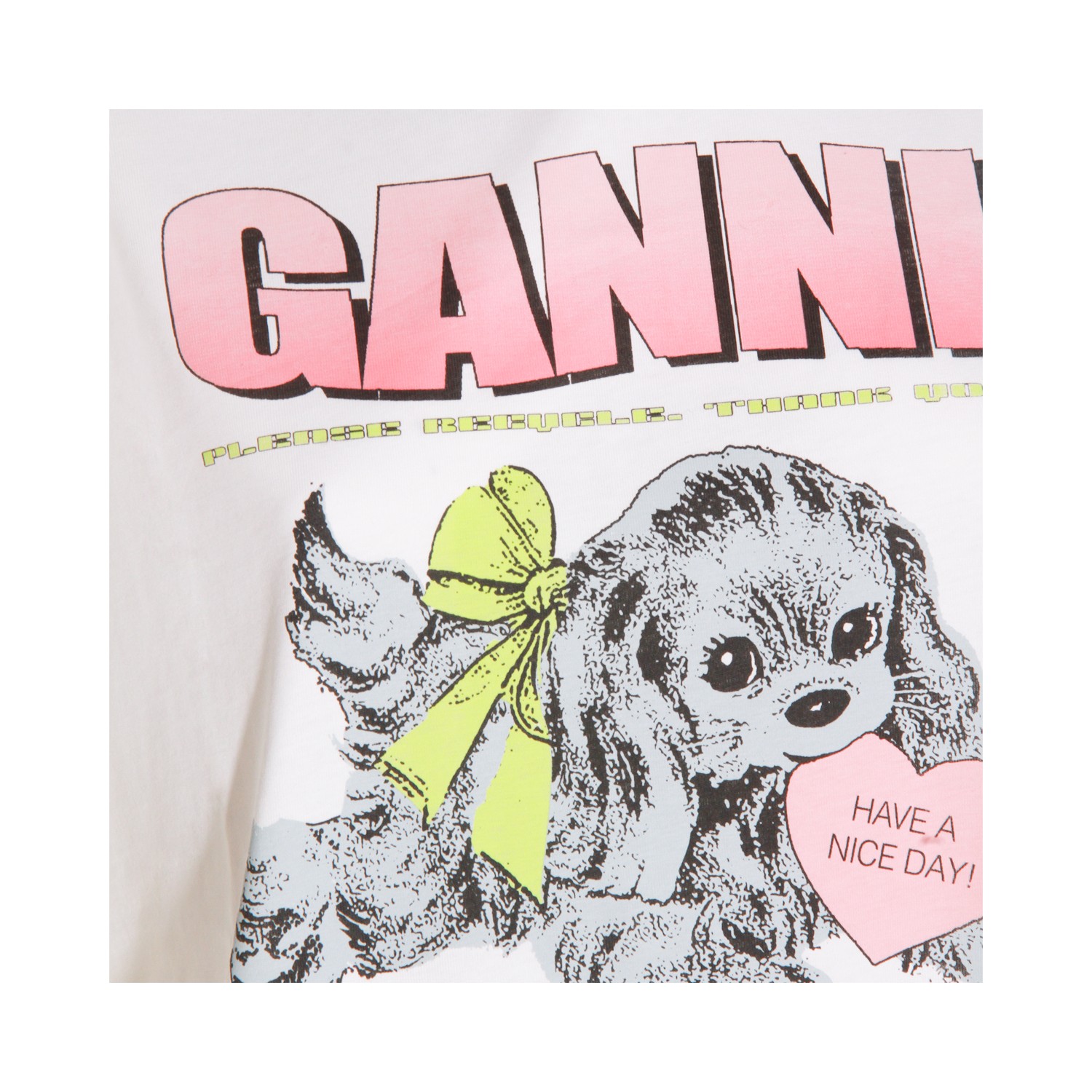 White cotton t-shirt from Ganni featuring round collar, short sleeves and regular vestibility.
