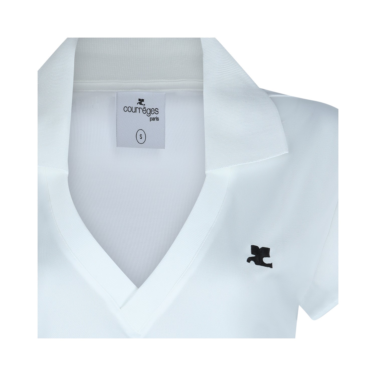 White polo shirt from Courreges featuring regular neck, V-neck, short sleeves, logo and regular vestibility.