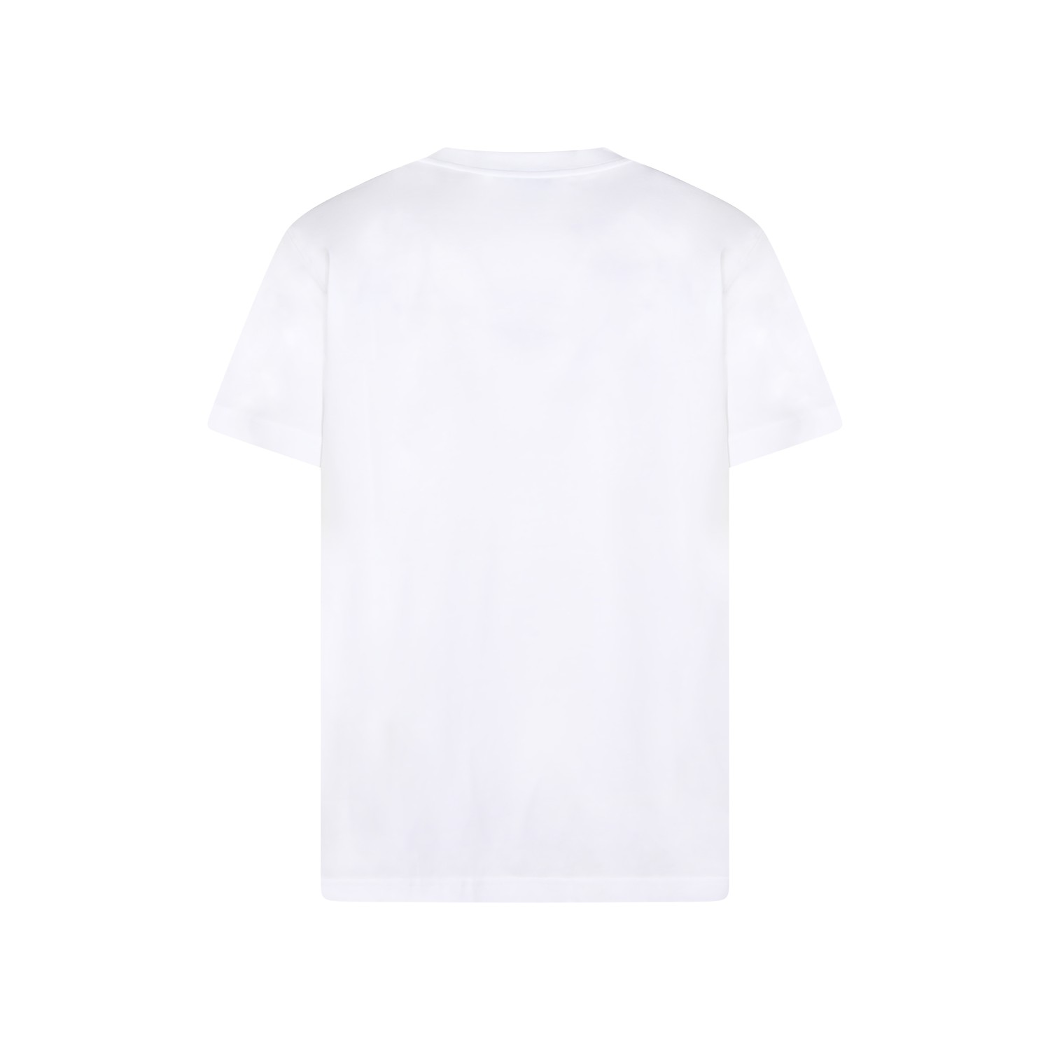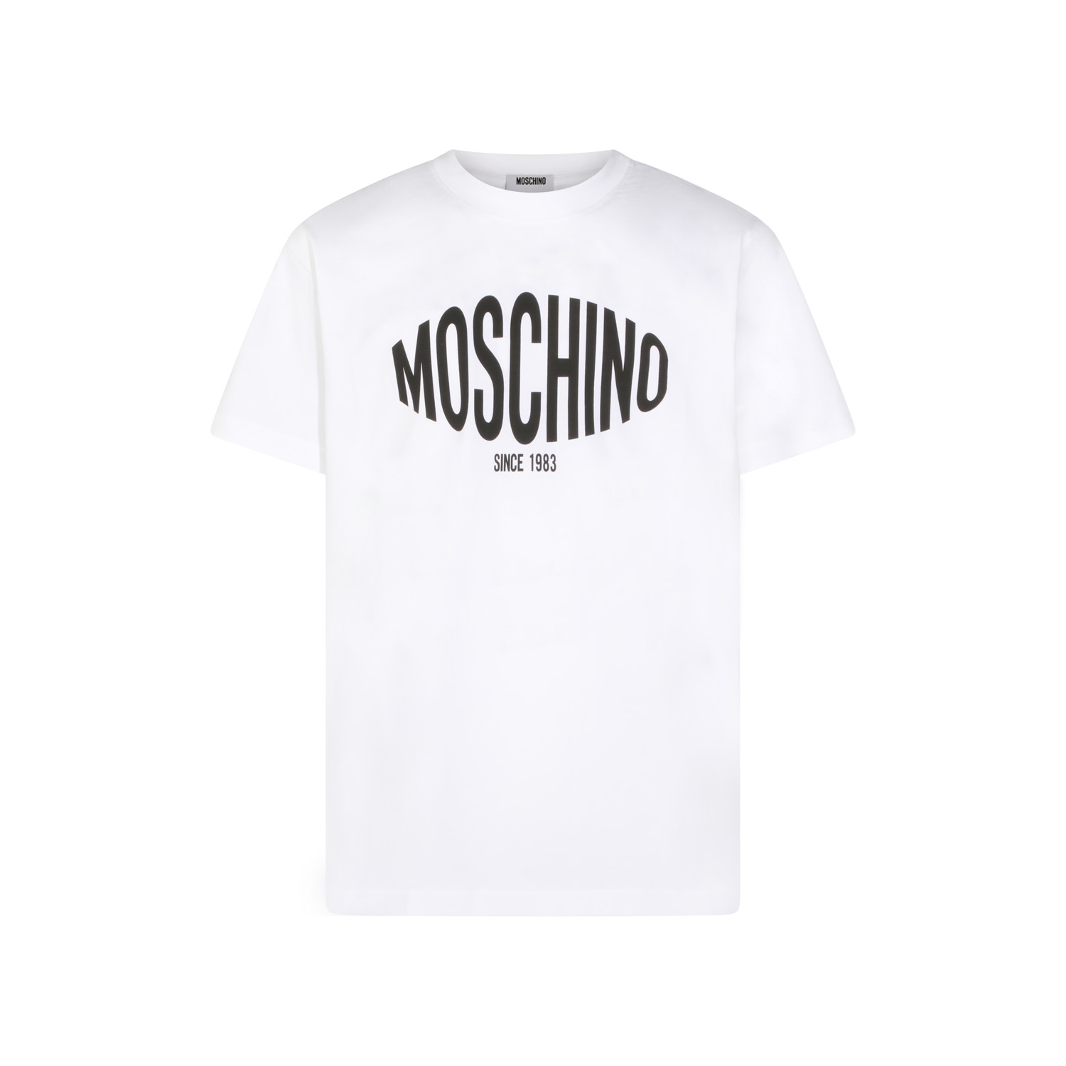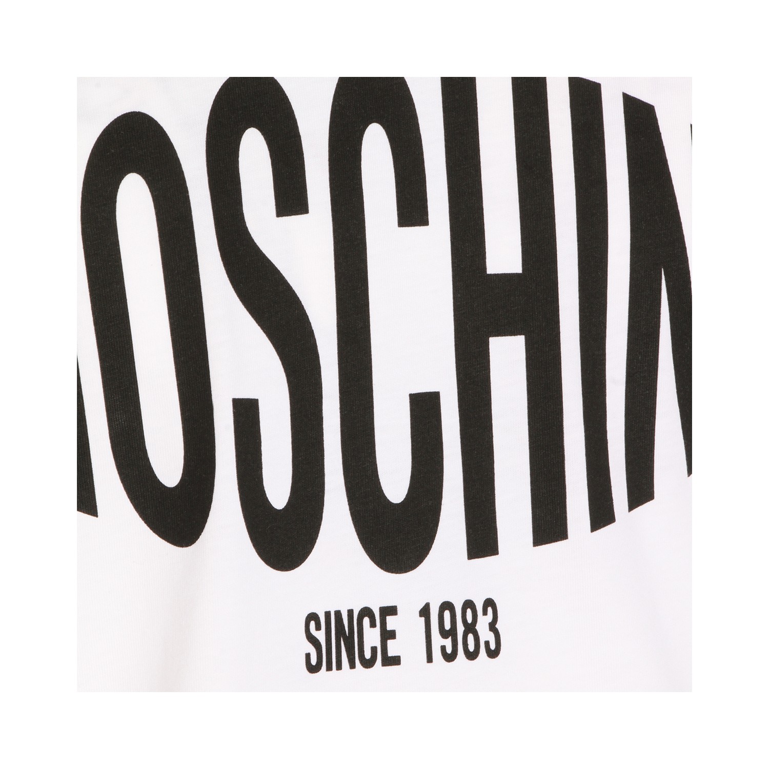 White cotton t-shirt from Moschino featuring crew neck, short sleeves, frontal logo and regular vestibility.
