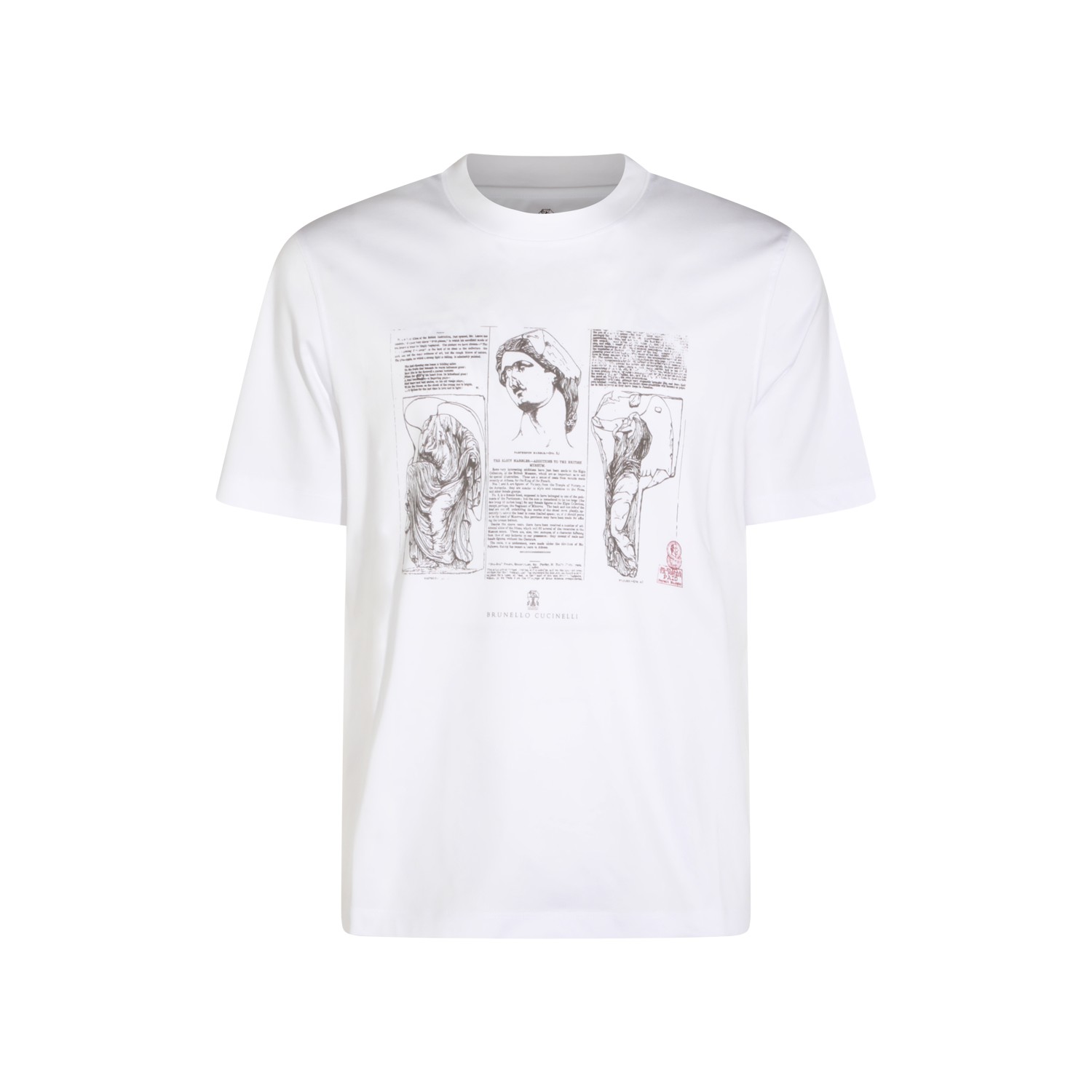 White cotton t-shirt from Brunello Cucinelli featuring crew neck, short sleeves, frontal stamp and regular vestibility.