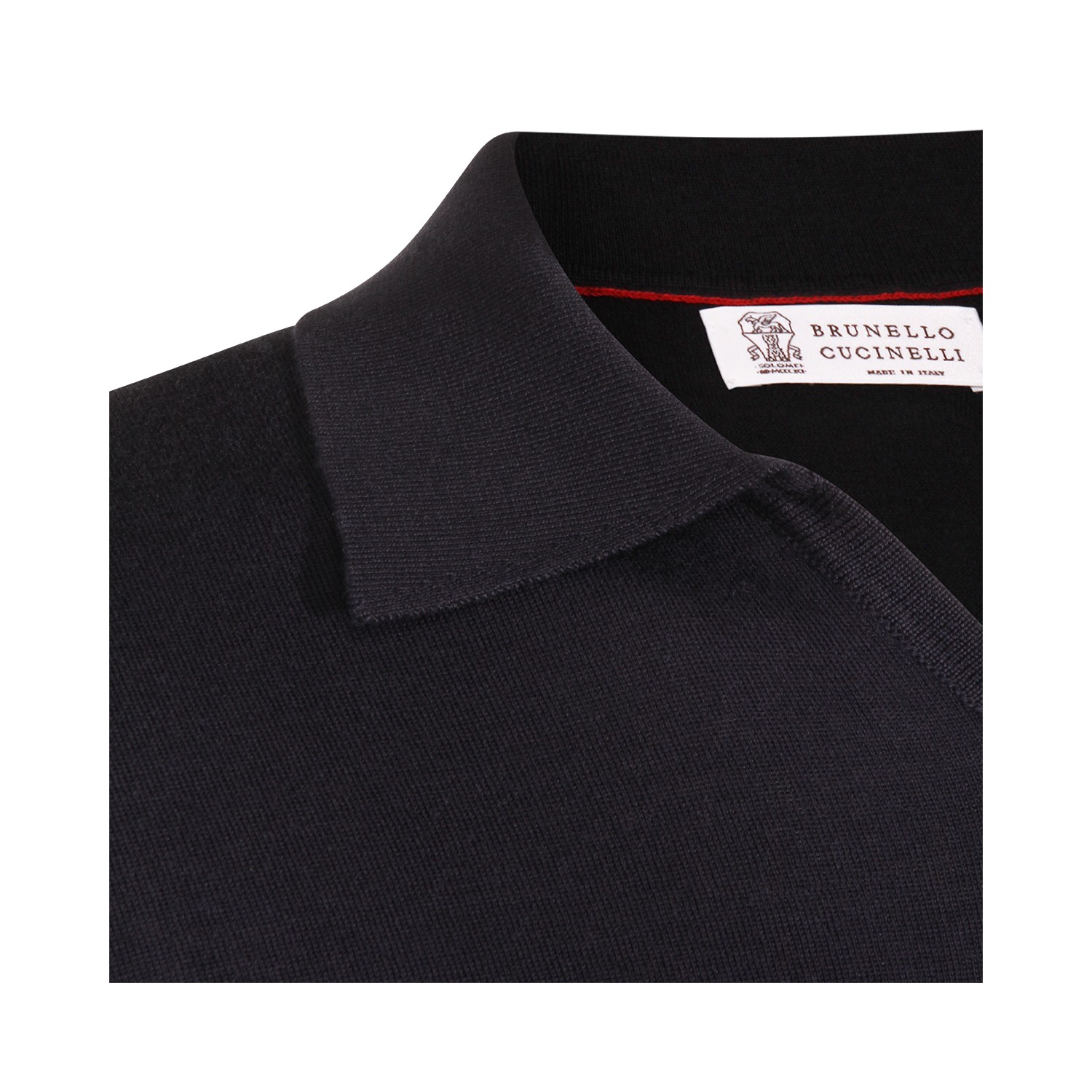 Navy cotton polo shirt from Brunello Cucinelli featuring regular neck, short sleeves and regular vestibility.