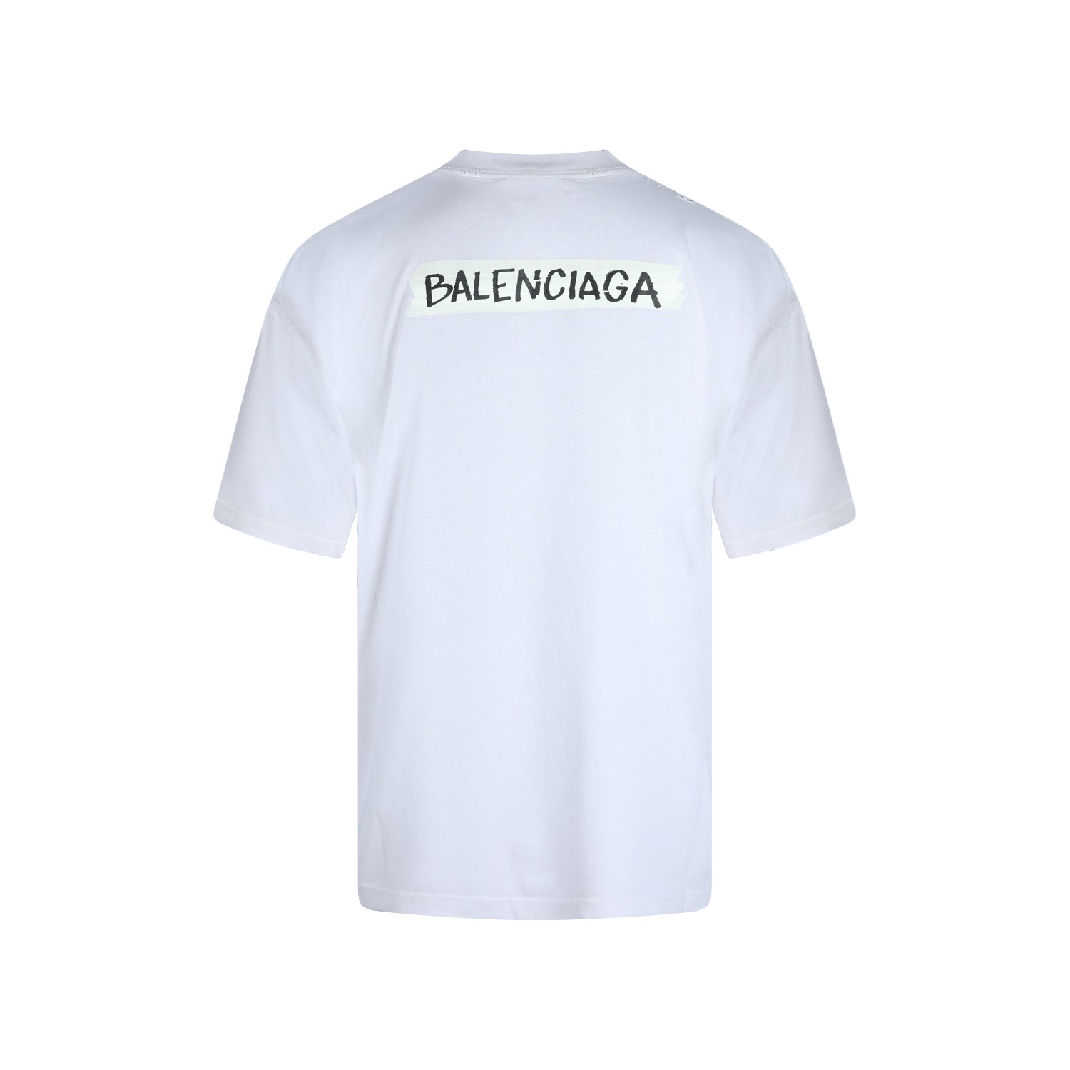 White cotton t-shirt from Balenciaga featuring crew neck, short sleeves, frontal stamp and regular vestibility.