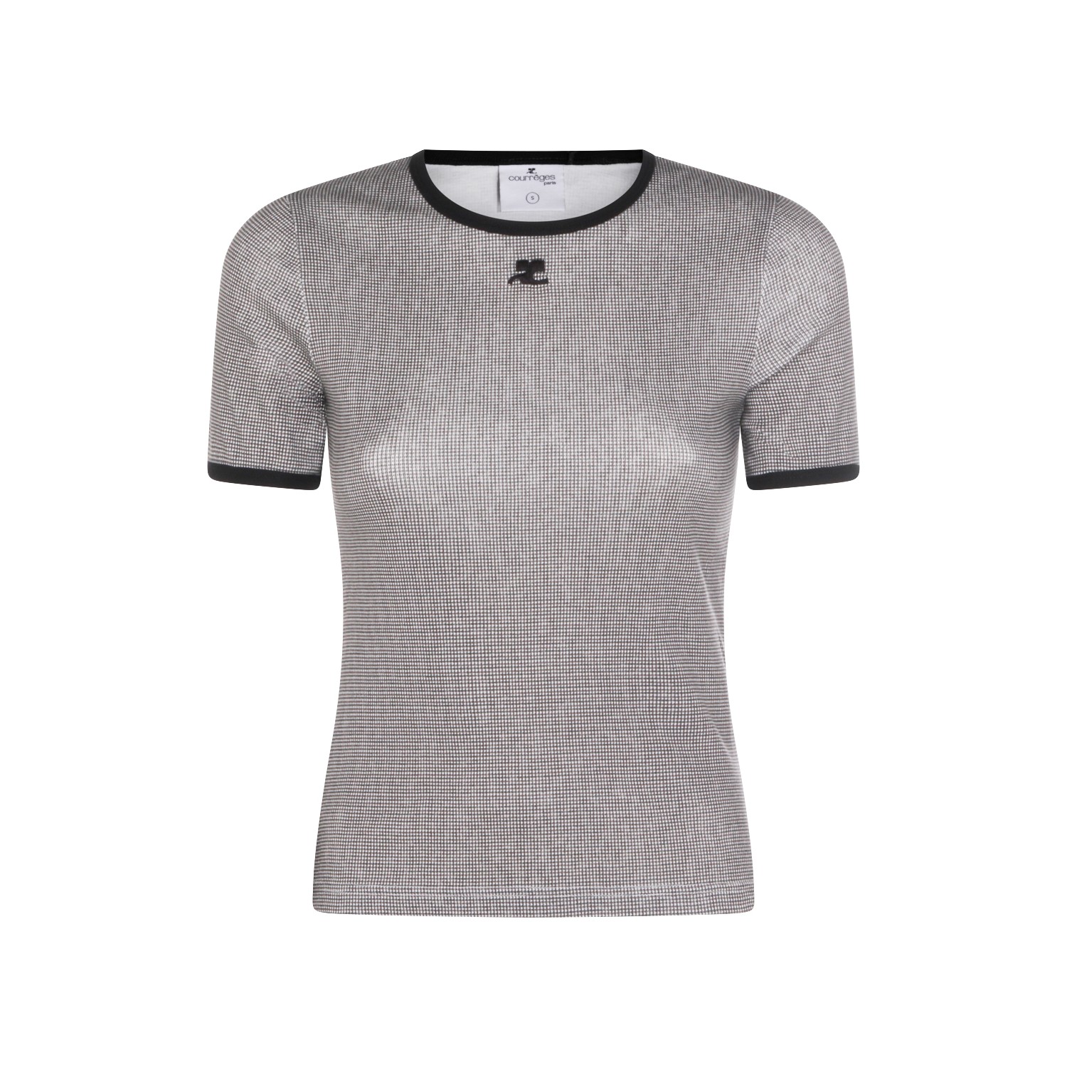 Silver cotton t-shirt from Courres featuring crew neck, short sleeves, frontal ebroidered logo and slim fit.