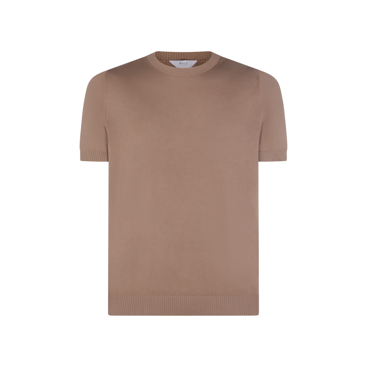 Brown cotton t-shirt from Malo featuring crew neckline, short sleeves and regular vestibility.