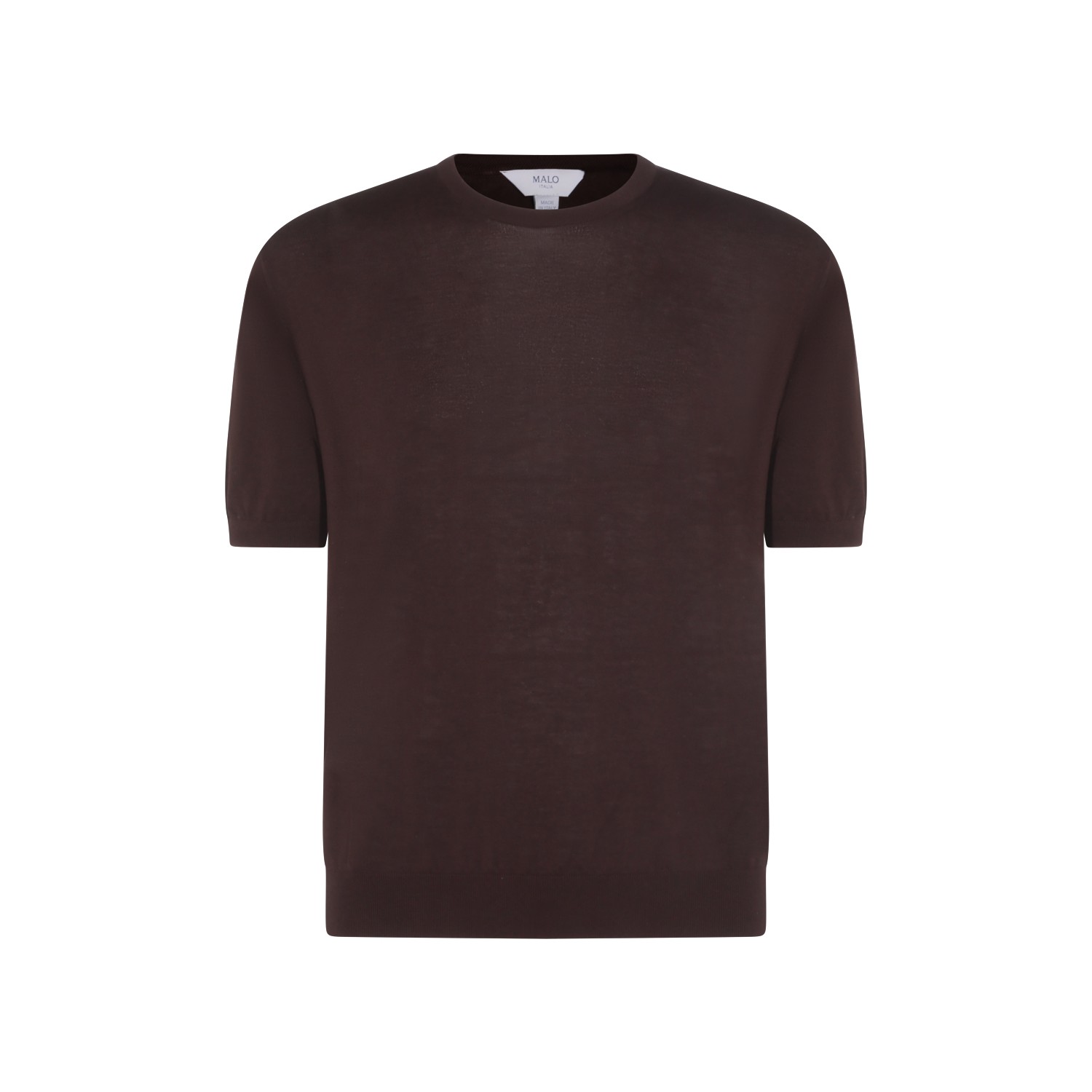 Brown cotton t-shirt from Malo featuring short sleeves, round collar and regular vestibility.