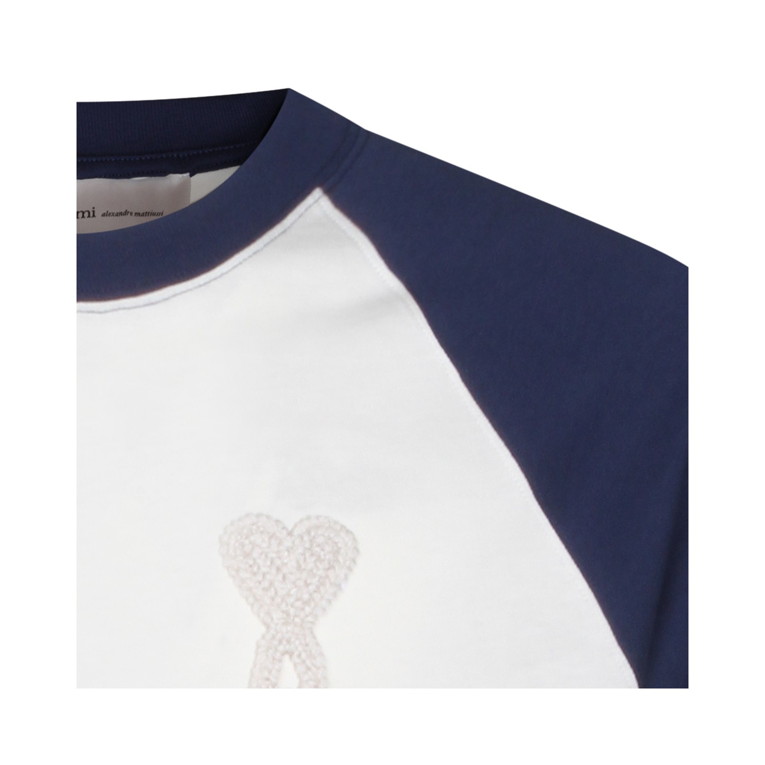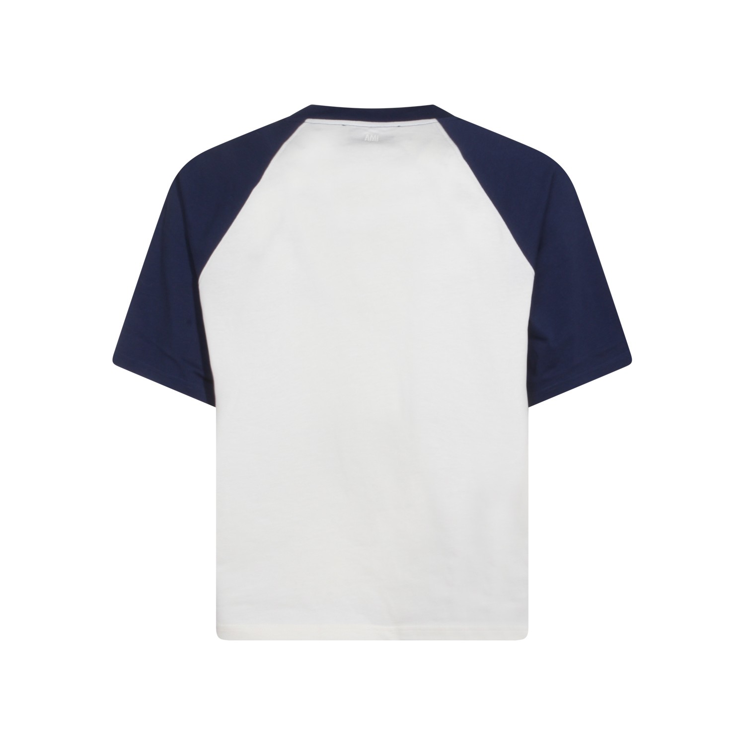 White and blue cotton t-shirt from Ami Paris featuring round collar, short sleeves and regular vestibility.