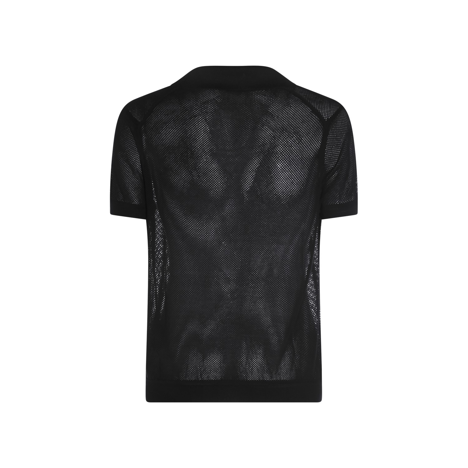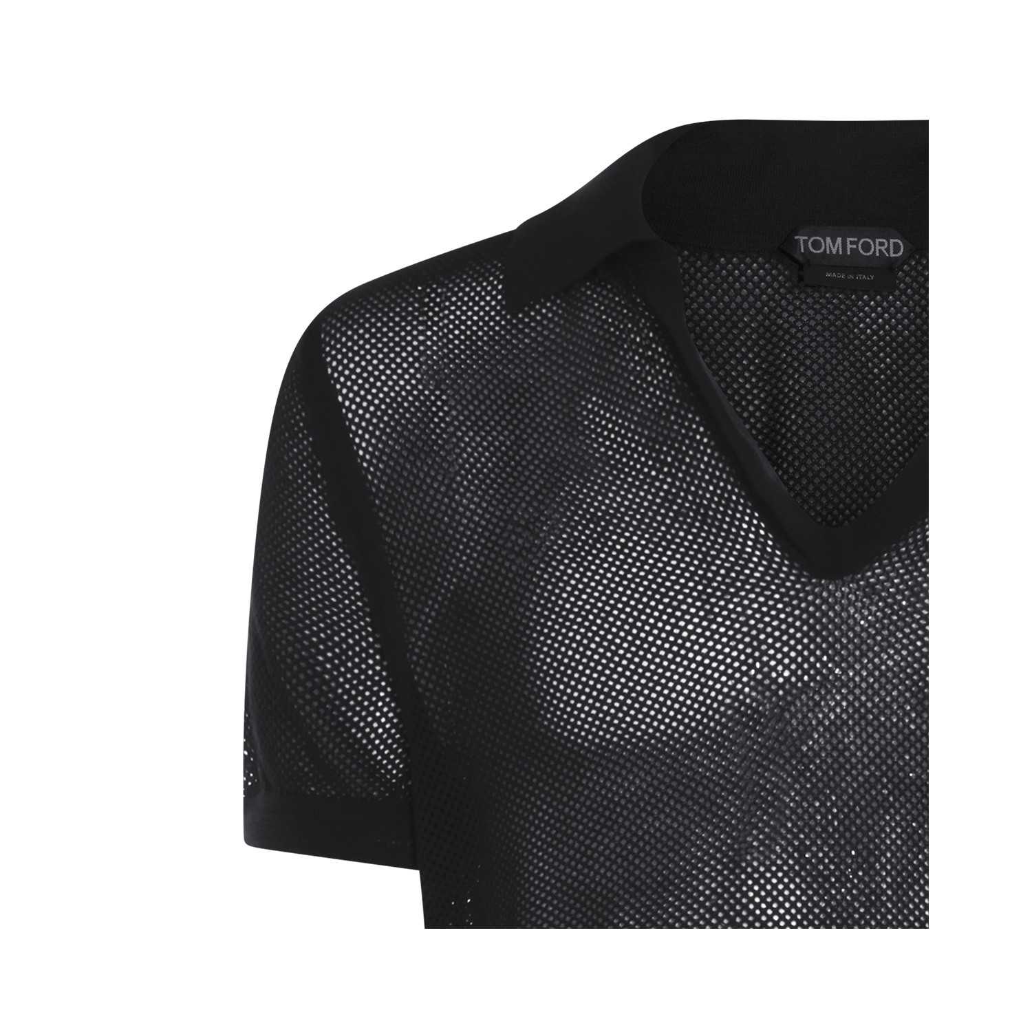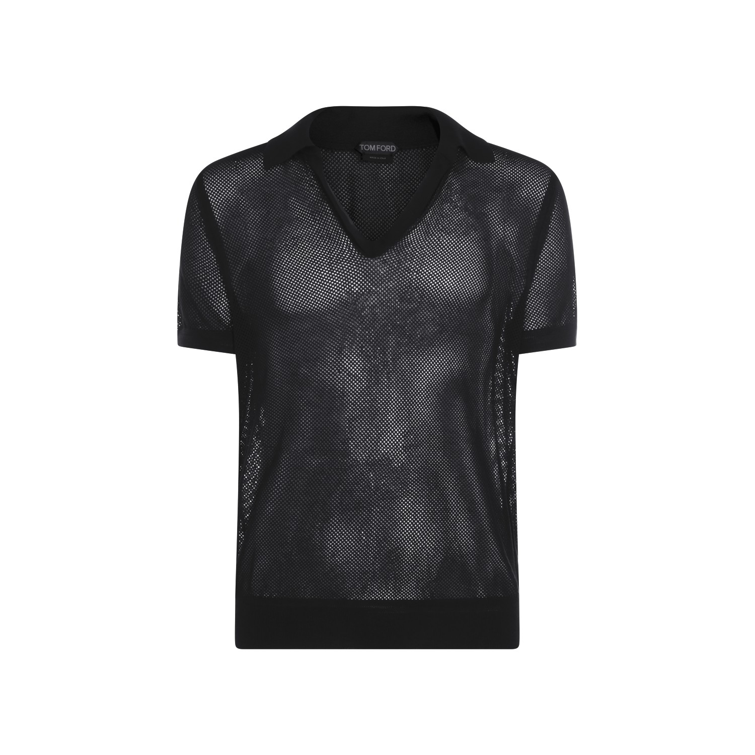 Black cotton polo shirt from Tom Ford featuring v neck and collar, short sleeves, trasparence and regular fit.
