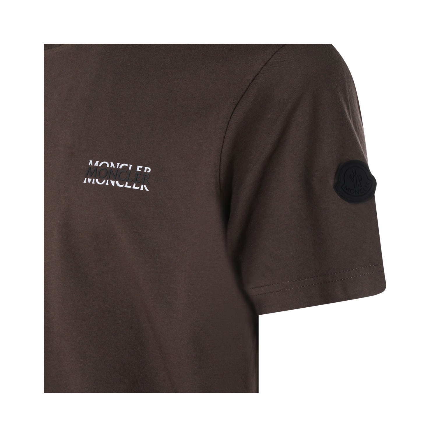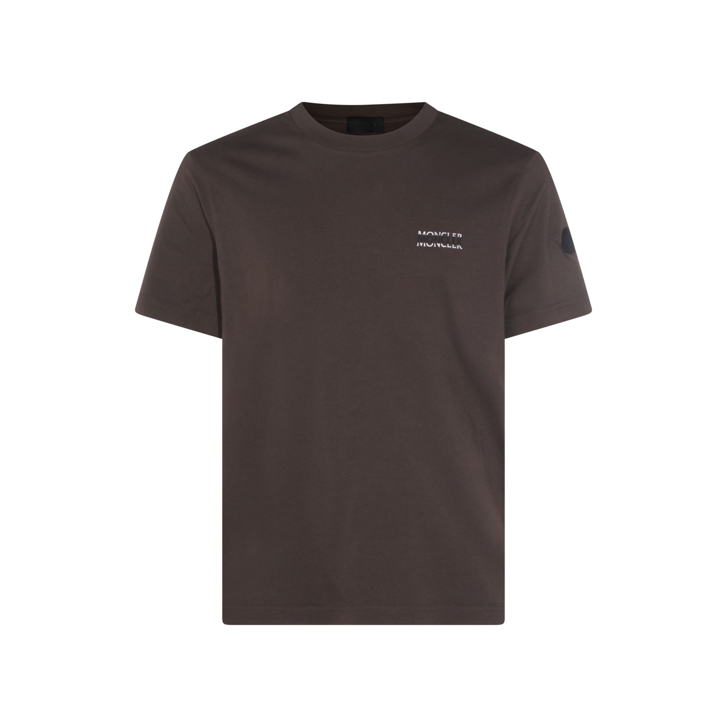 Brown cotton t-shirt from Moncler featuring crew neckline, short sleeves and regular fit.