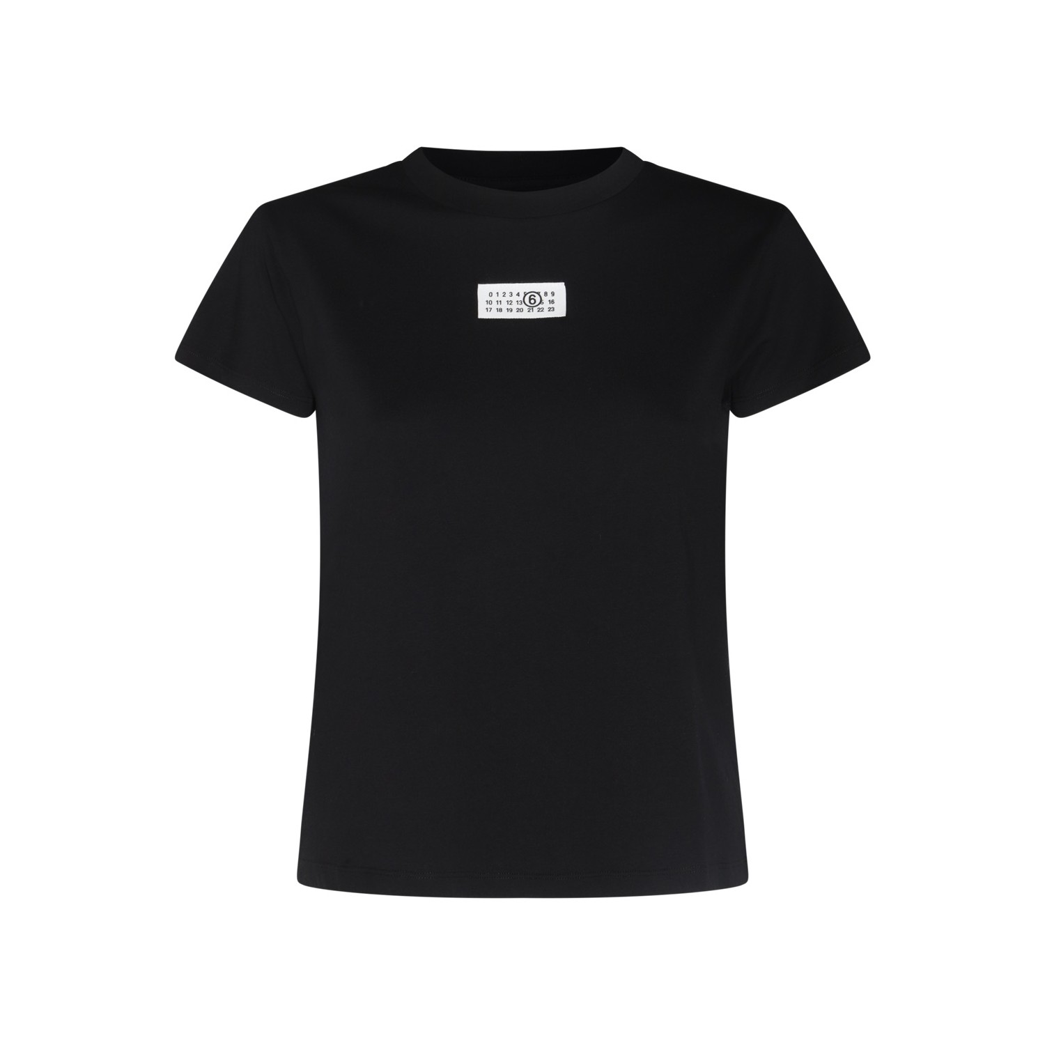 Black cotton t-shirt from MM6 Maison Margiela featuring crew neckline, short sleeves, frontal logo patch and regular vestibility.