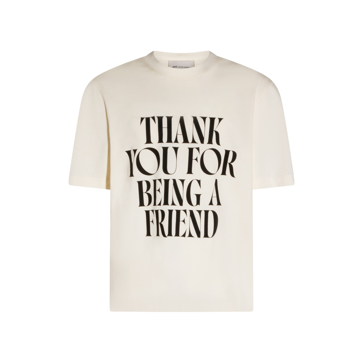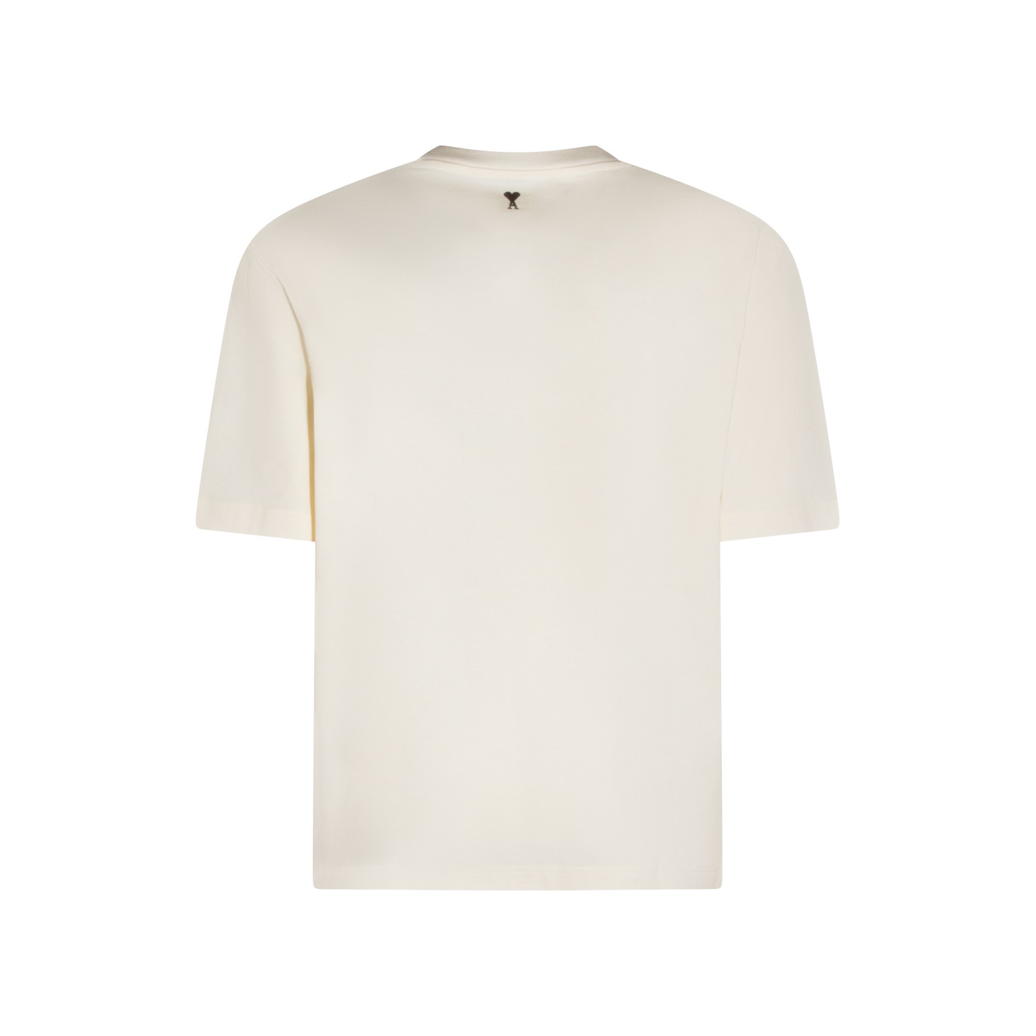 Off white cotton t-shirt from Ami Paris featuring short sleeves, round collar, frontal stamp and regular vestibility.