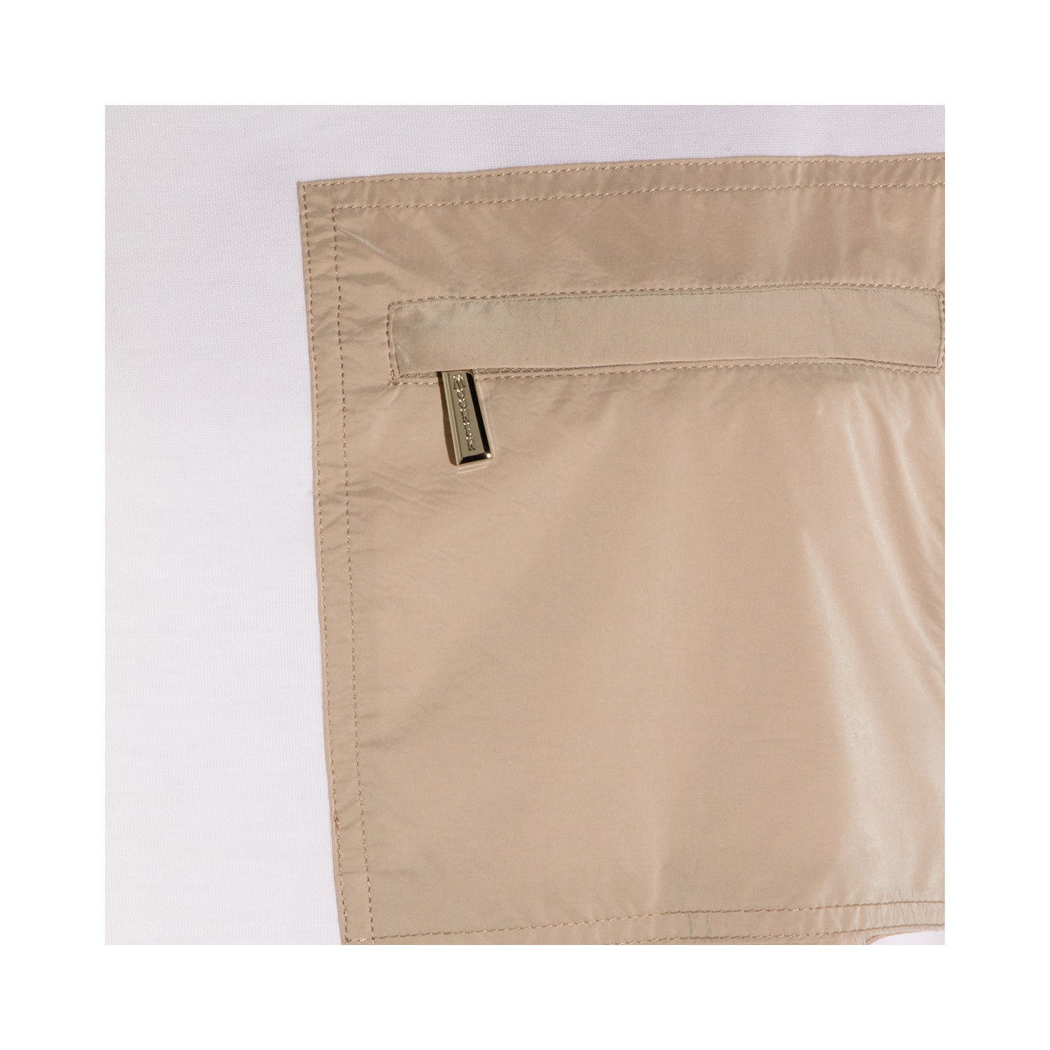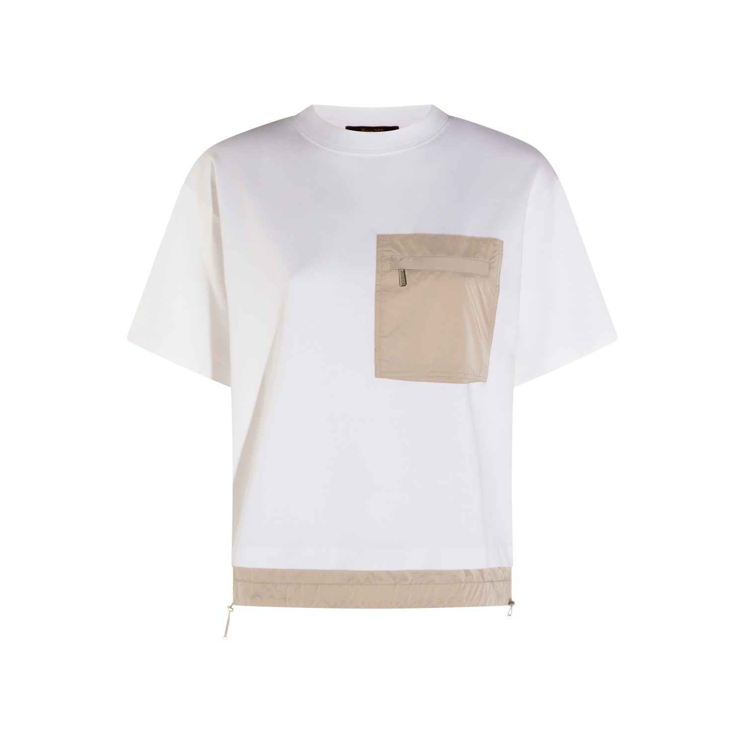 White and beige cotton t-shirt from Moorer featuring short sleeves, round collar and pocket.