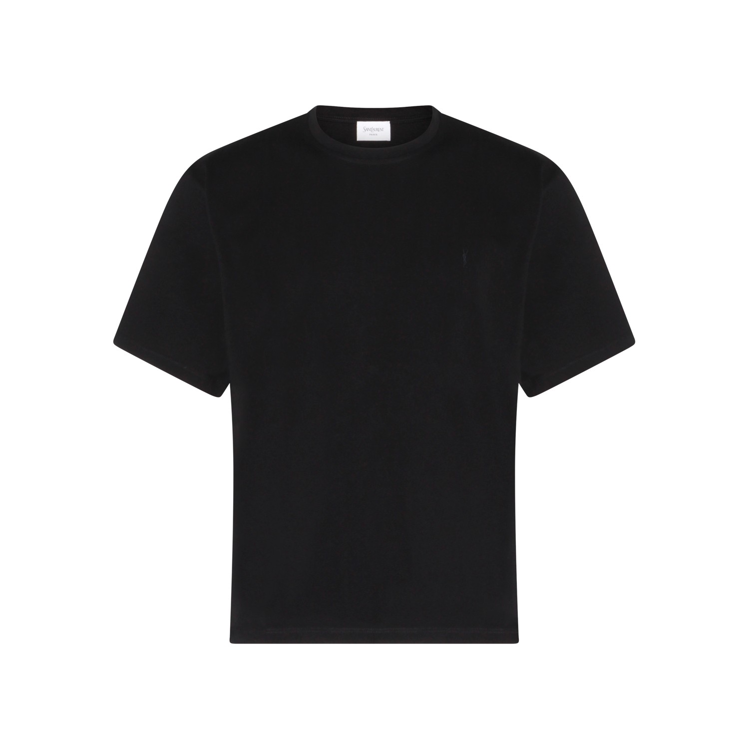 Black cotton t-shirt from Saint Laurent featuring short sleeves, round collar, frontal logo at chest and regular vestibility.