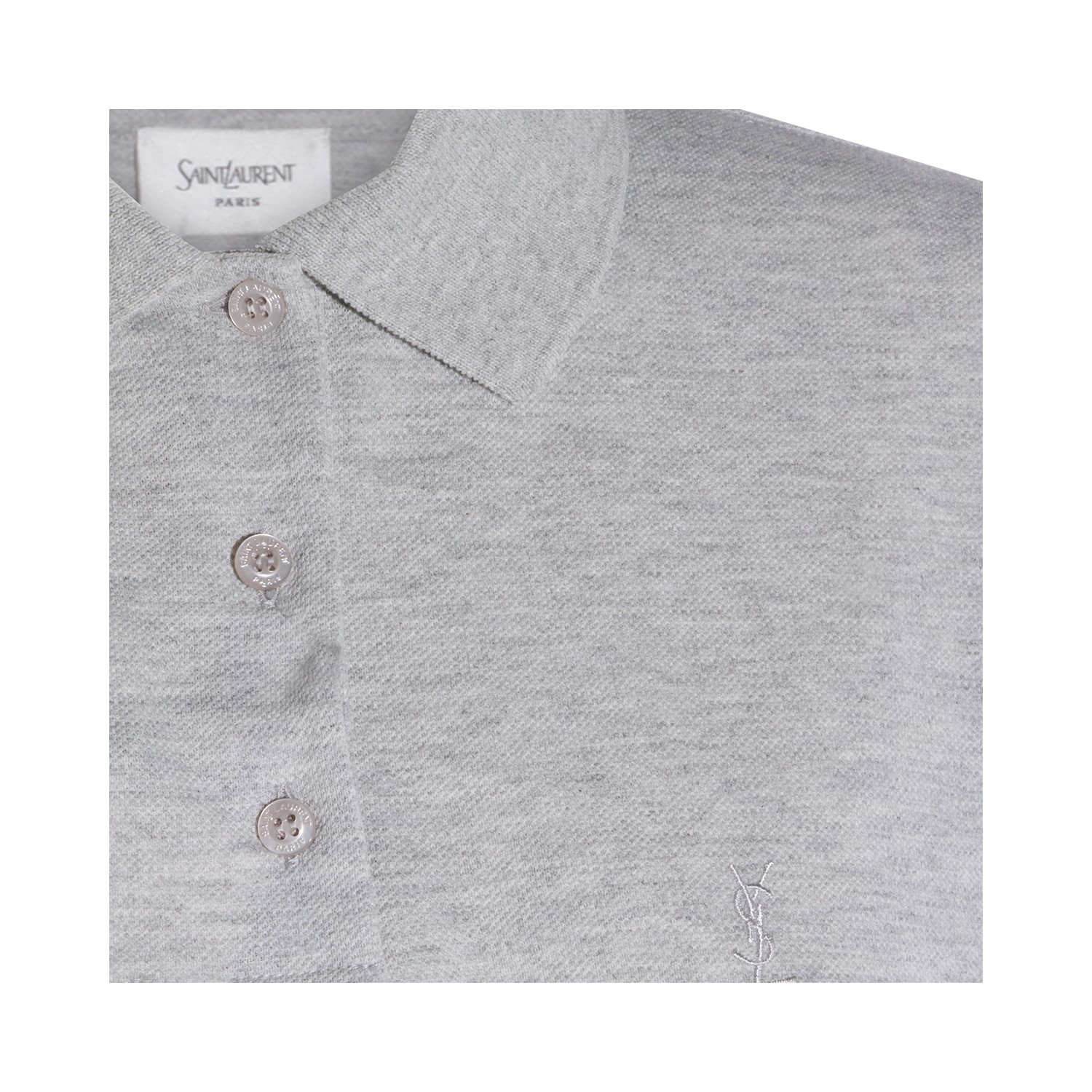 Grey cotton polo shirt from Saint Laurent featuring short sleeves, polo shirt collar, buttons fastening, frontal embroidered logo and regular vestibility.