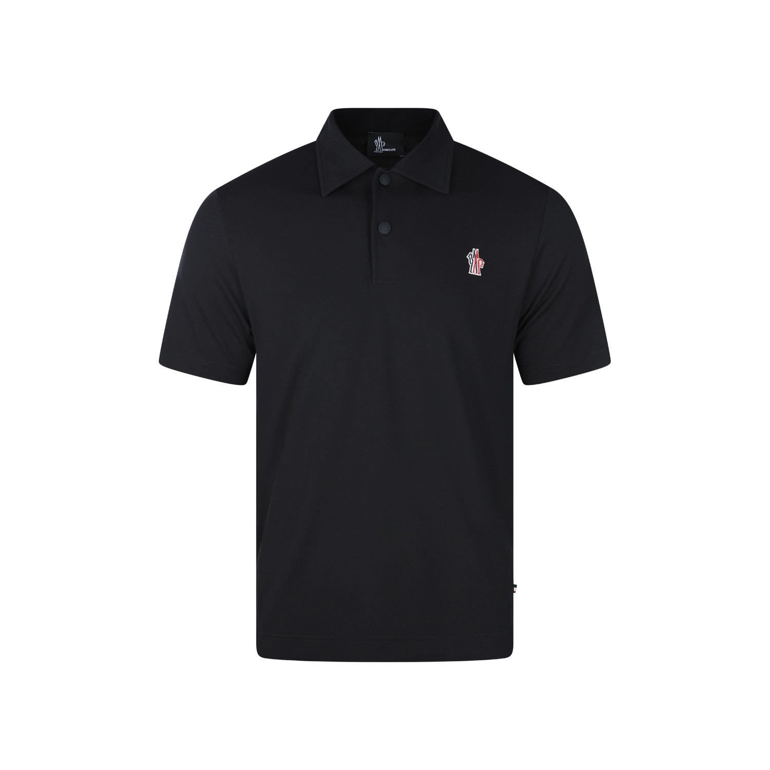 Black polo shirt from Moncler Grenoble featuring classic polo shirt, short sleeves, heart logo patch and regular fit.