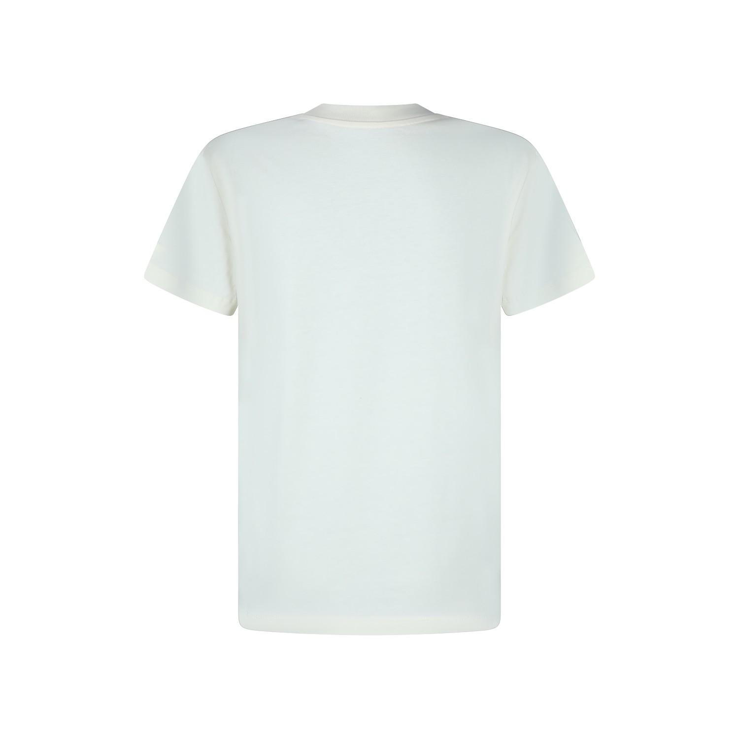 White cotton T-shirt from Moncler featuring short sleeves, round neck, straight hem and regular fit.