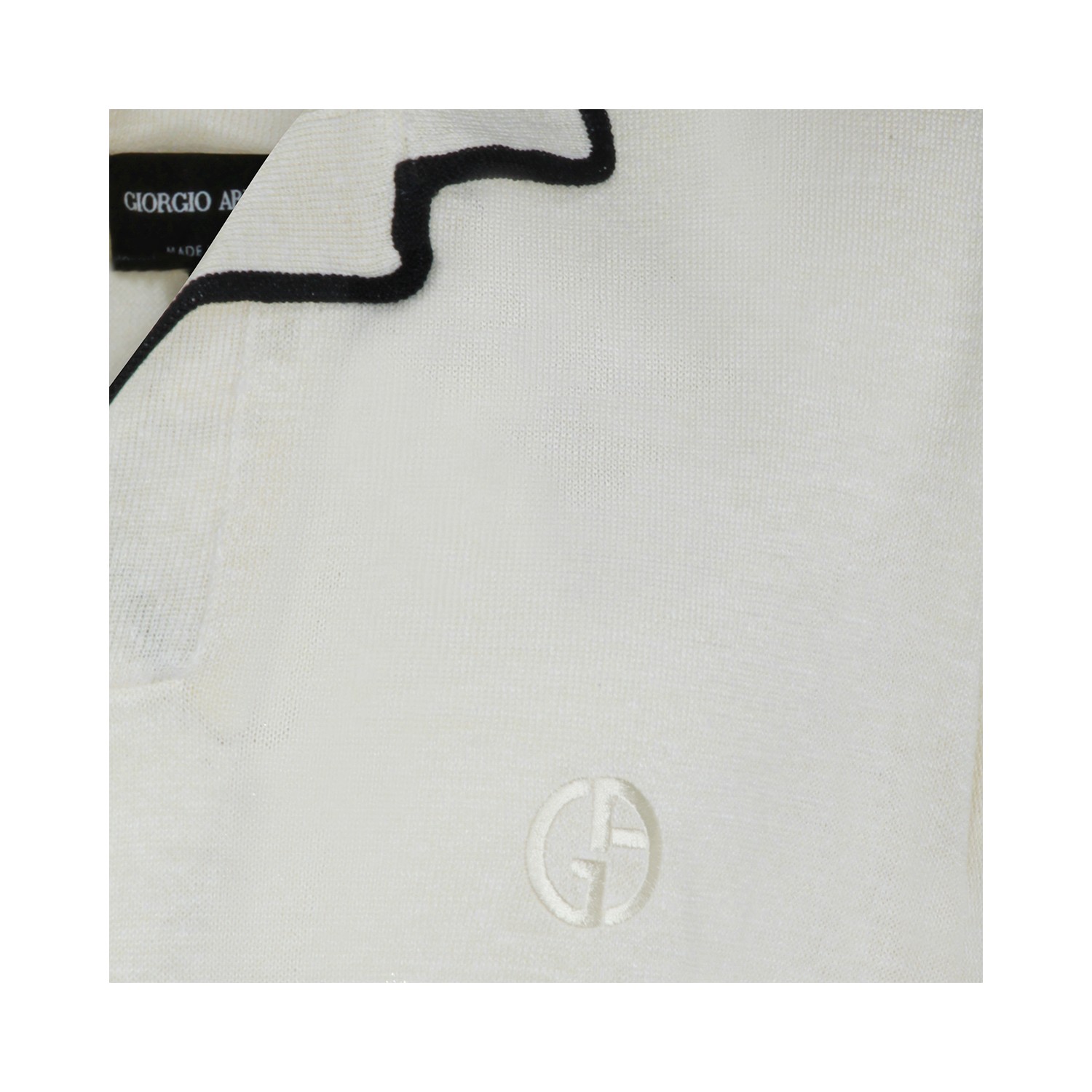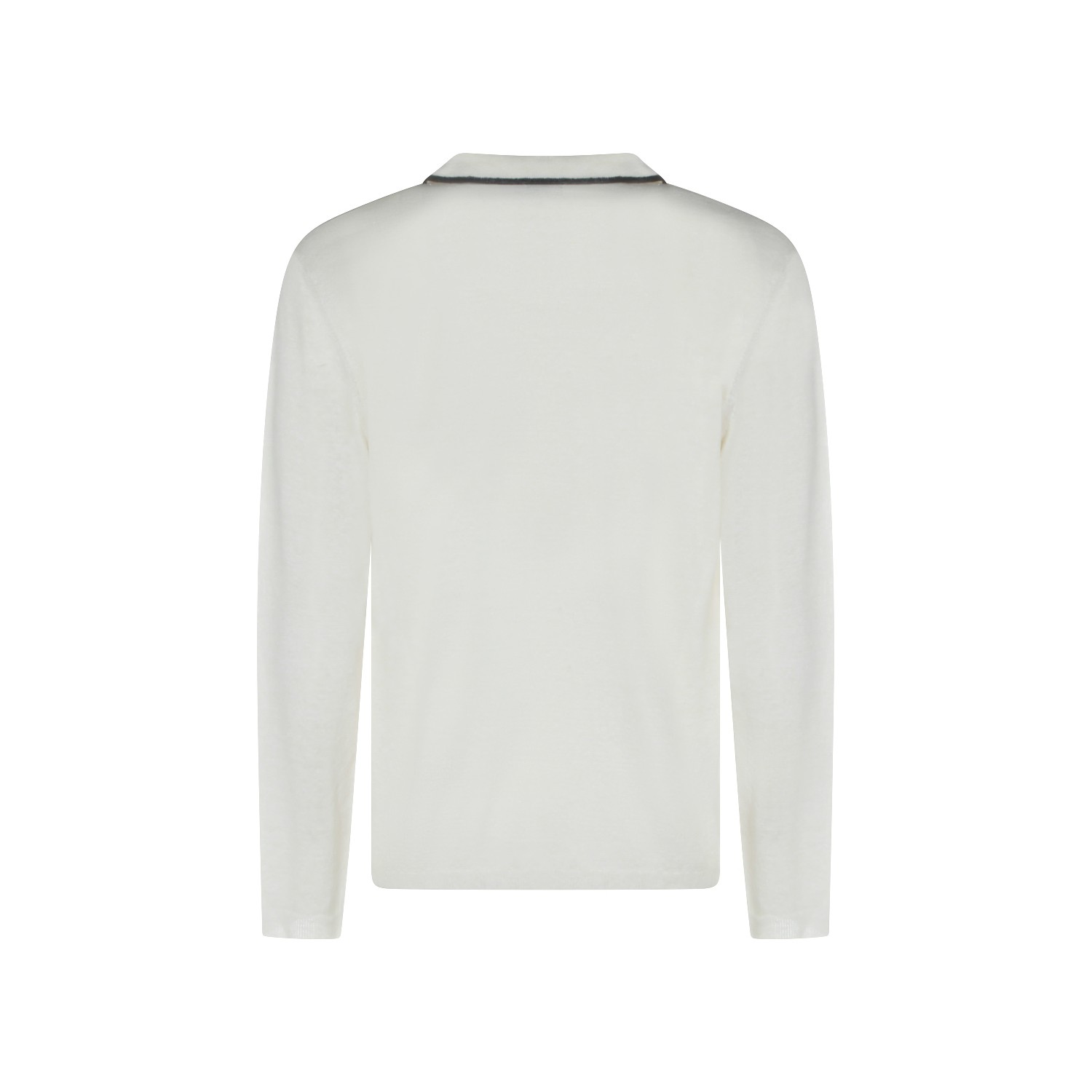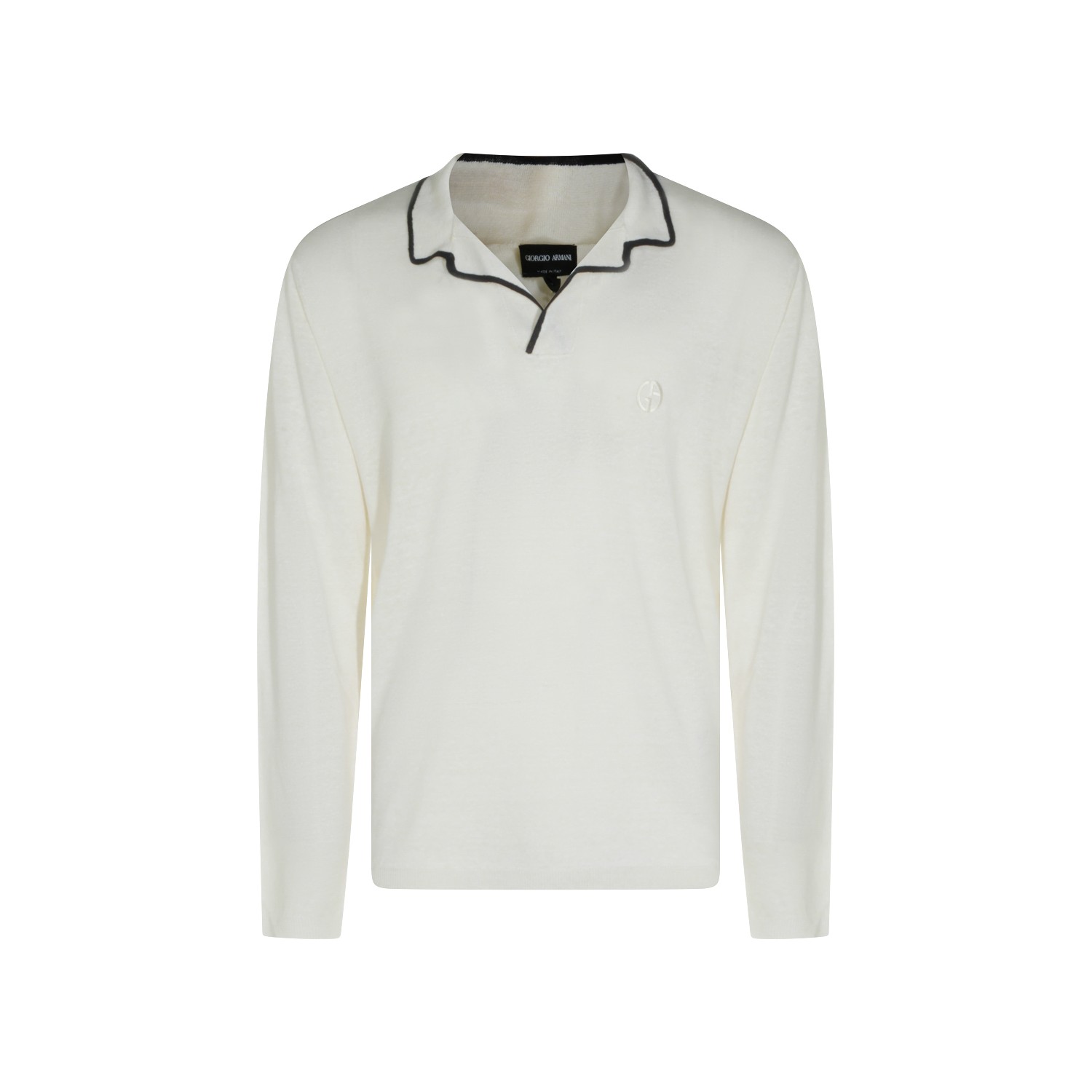 Ivory linen silk blend polo shirt from Giorgio Armani featuring polo shirt collar, long sleeves, linen and regular fit.