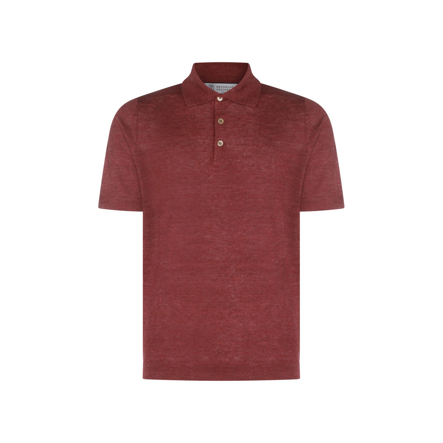 Red linen cotton blend polo shirt from Brunello Cucinelli featuring buttoned polo shirt, short sleeves, ribbed hem and regular fit.
