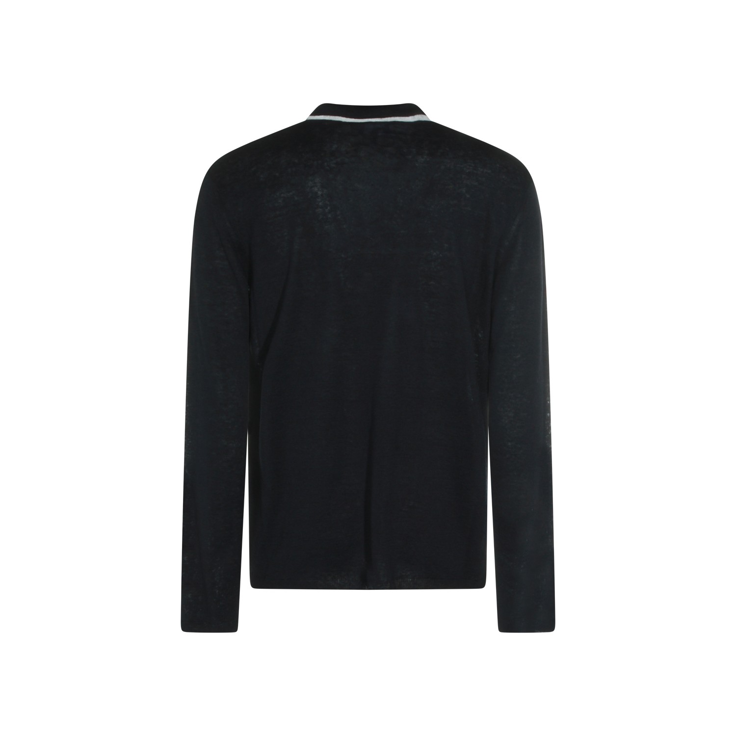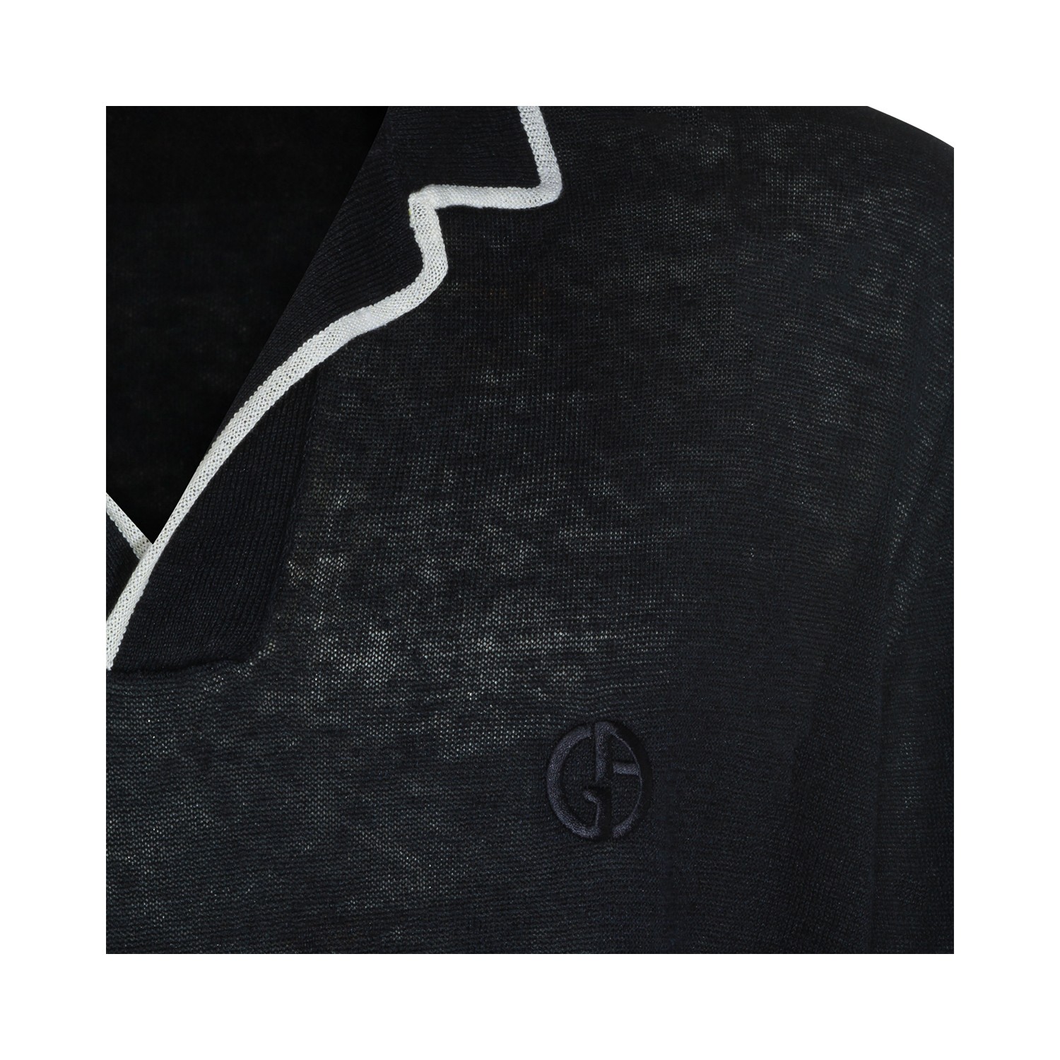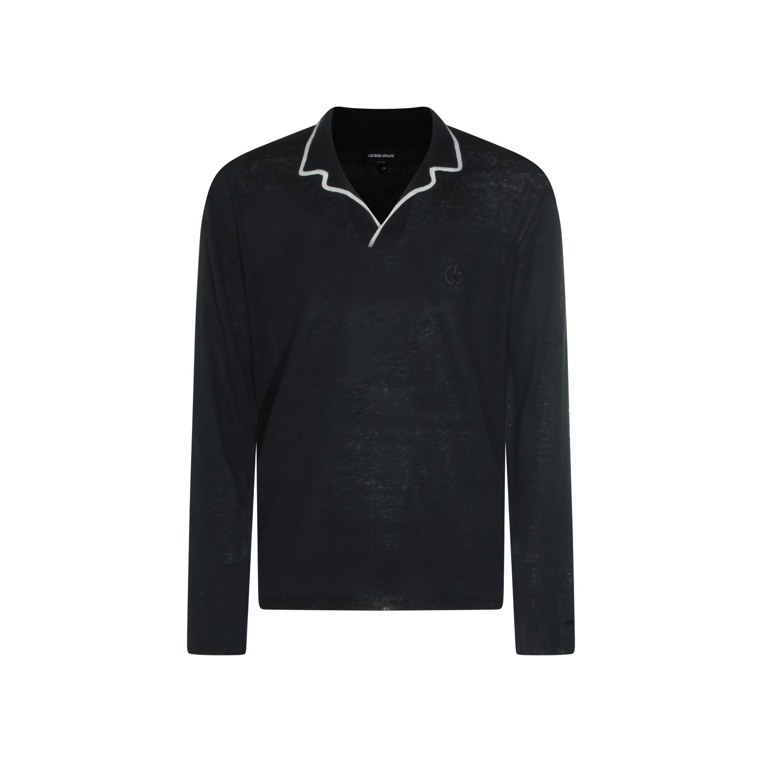 Navy linen silk blend polo shirt from Giorgio Armani featuring polo shirt collar, long sleeves, linen and regular fit.