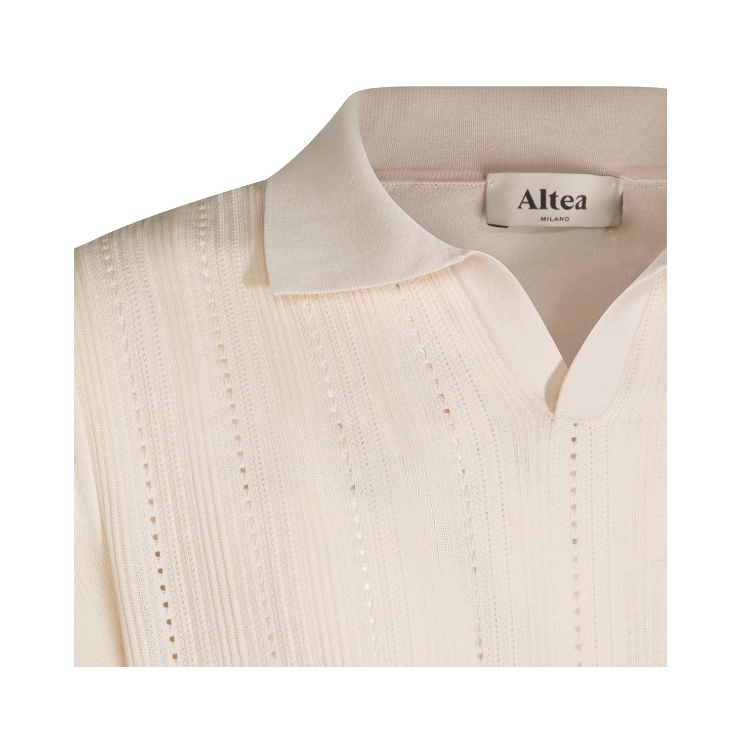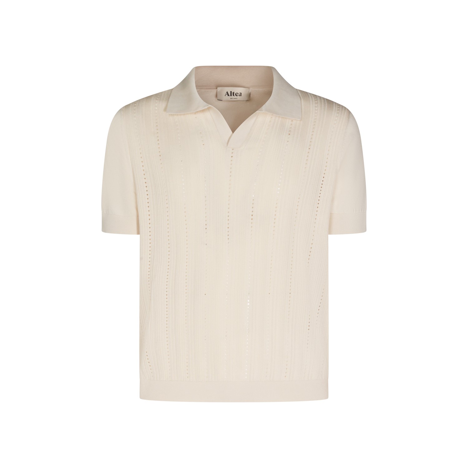 Ivory cotton polo shirt from Altea featuring polo shirt collar, short sleeves and regular fit.