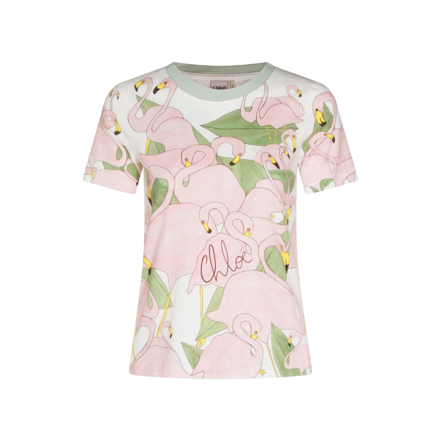 Multicolor cotton t-shirt from Chlofeaturing crew neck, short sleeves, all-over flamingo print and regular fit.
