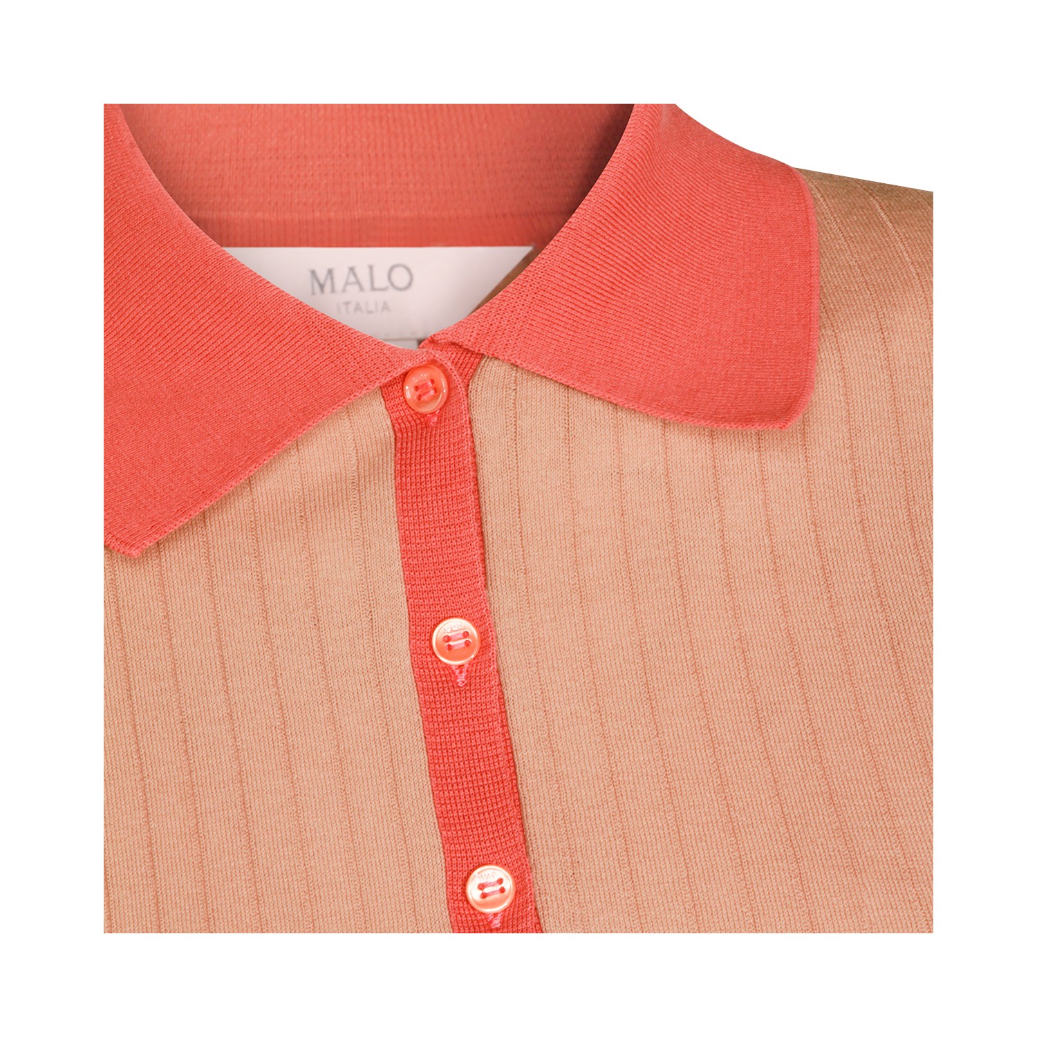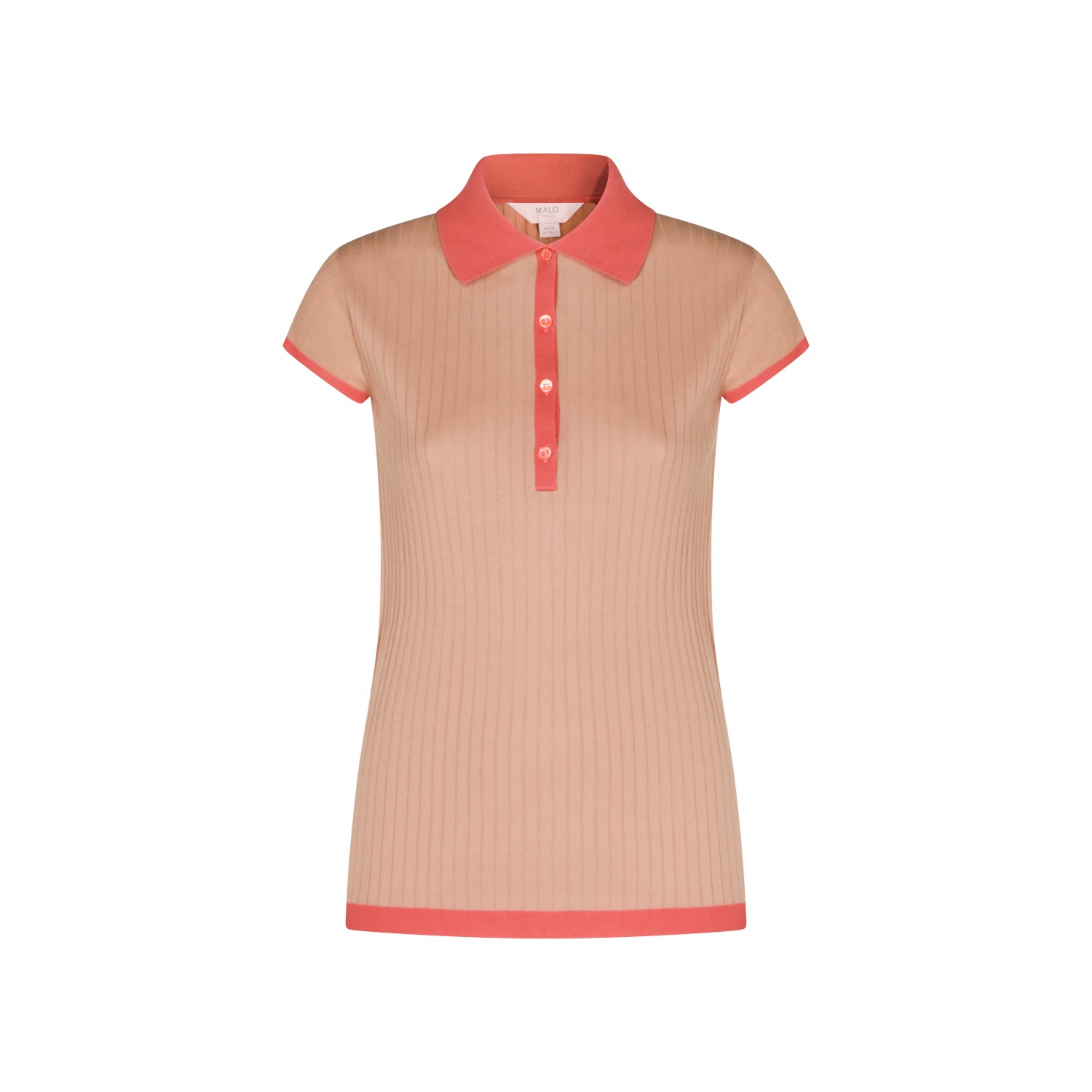 Nude and pink cotton polo shirt from Malo featuring classic polo shirt, 3 buttons under the collar, short sleeves, ribbed motif and regular fit.