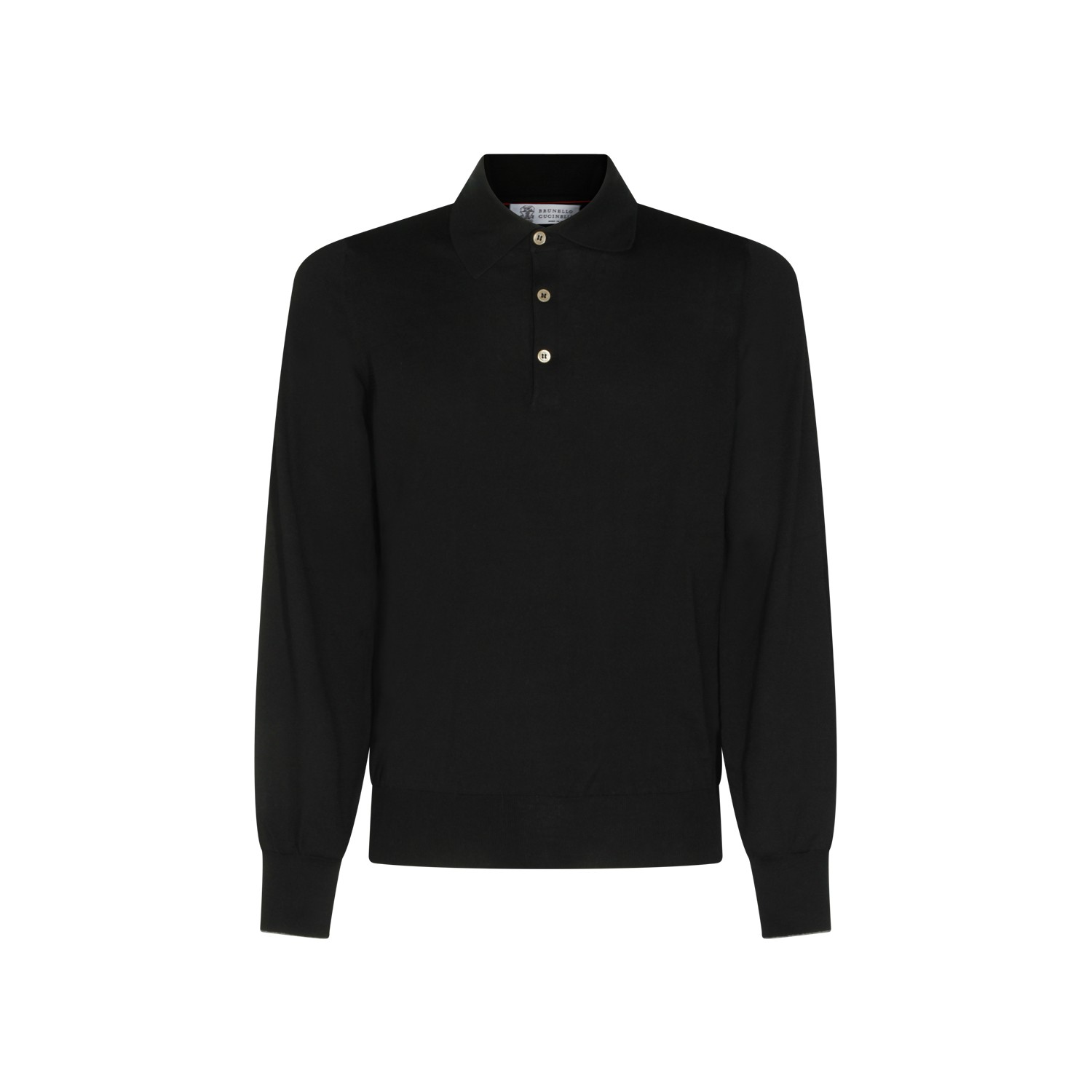 Black cotton polo shirt from Brunello Cucinelli featuring polo shirt collar long sleeves, ribbed cuffs and hem and regular fit.