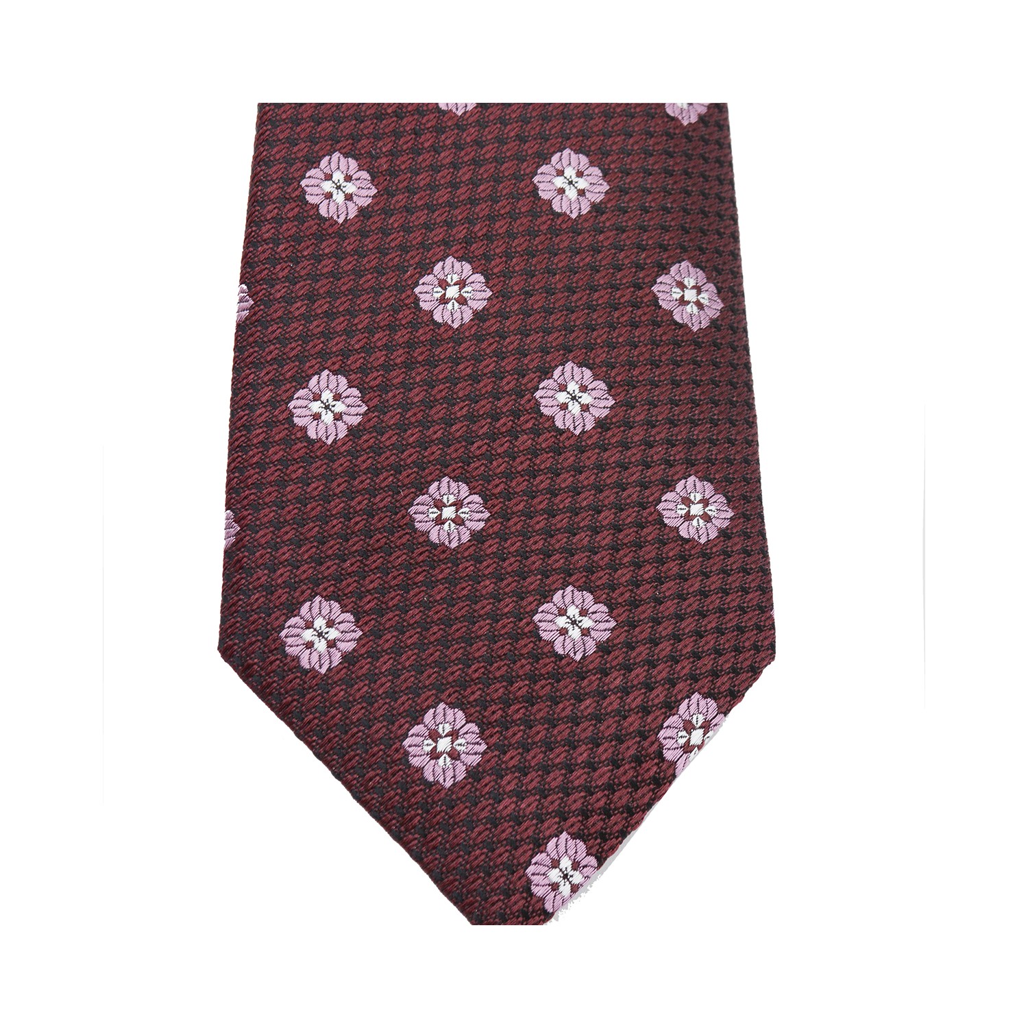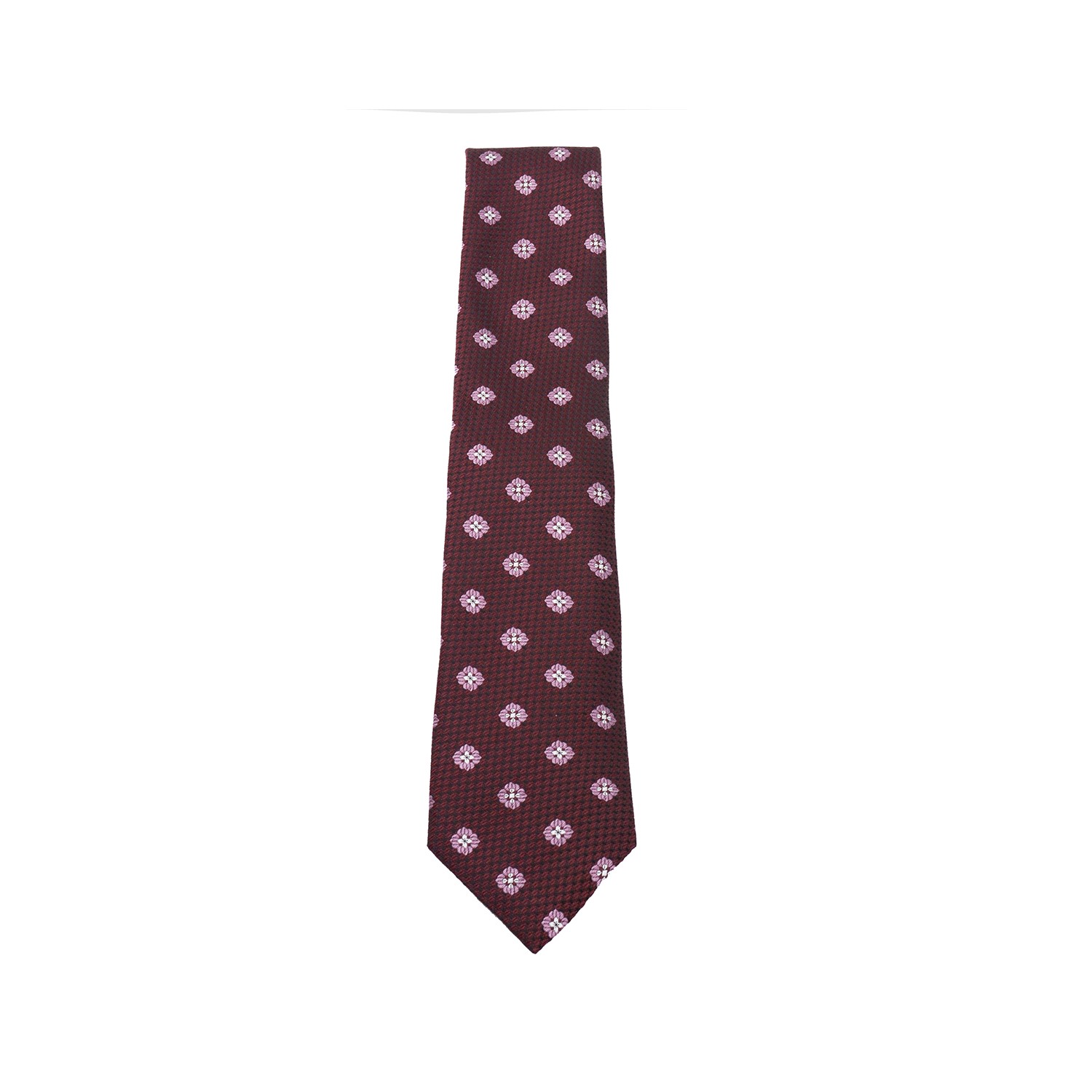 Burgundy silk tie from Zegna featuring all over pattern and logo patch.