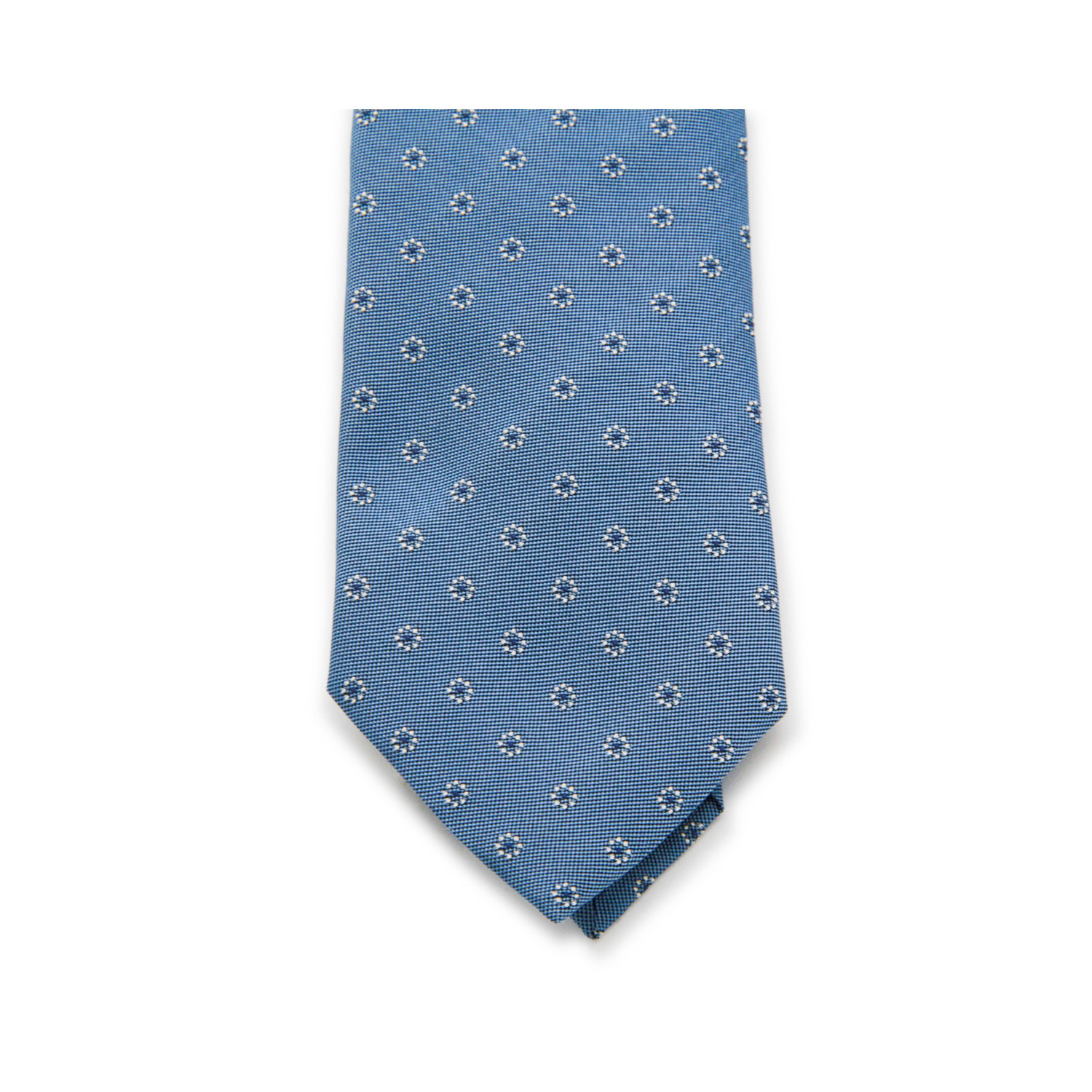 Light blue silk tie from Zegna featuring all-over print, silk, logo and pointed tip.
