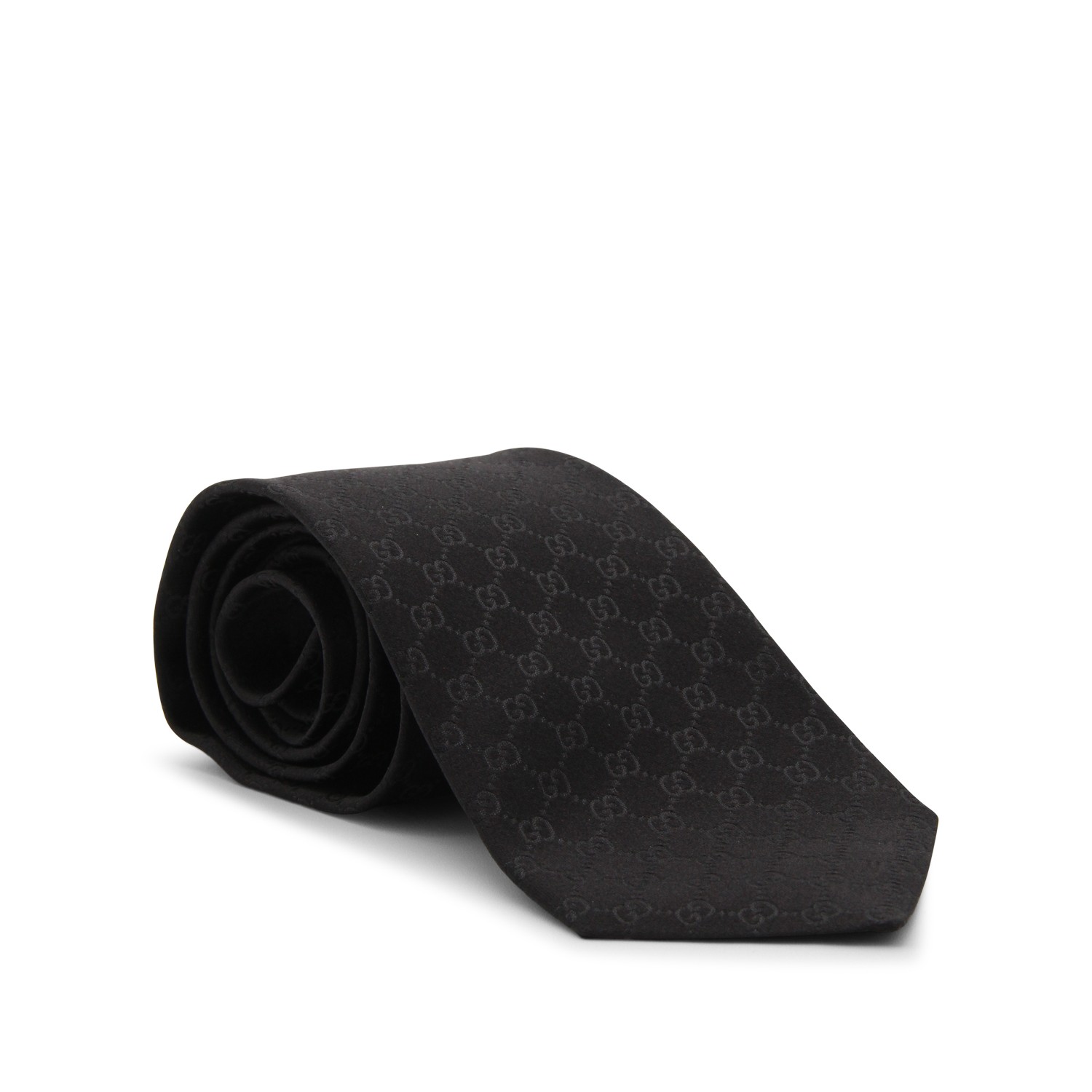 Black silk tie from Gucci featuring ton sur ton monogram.