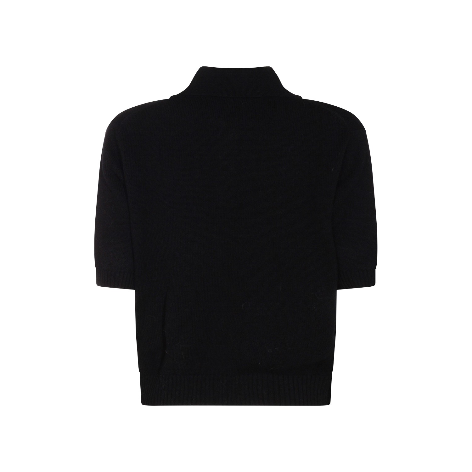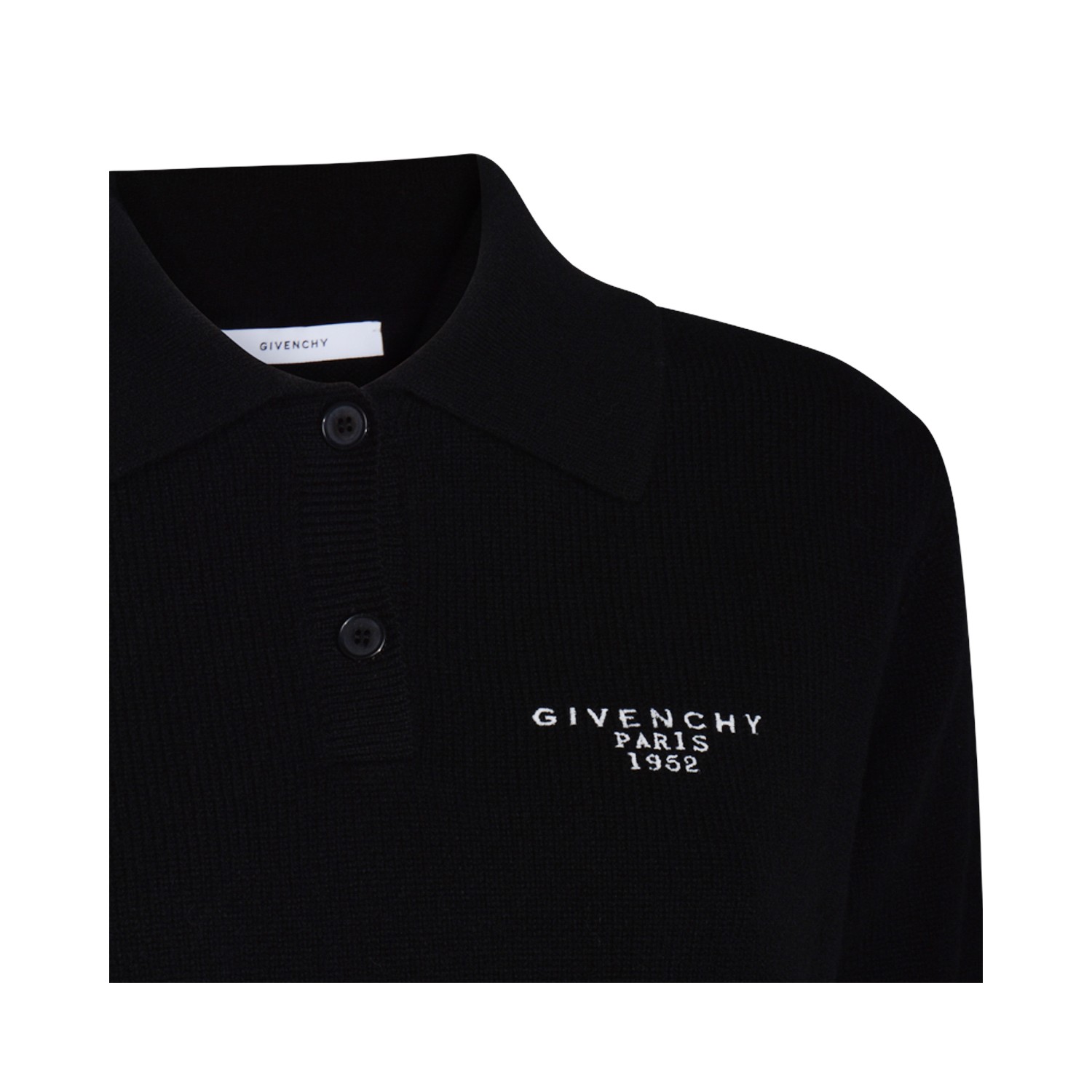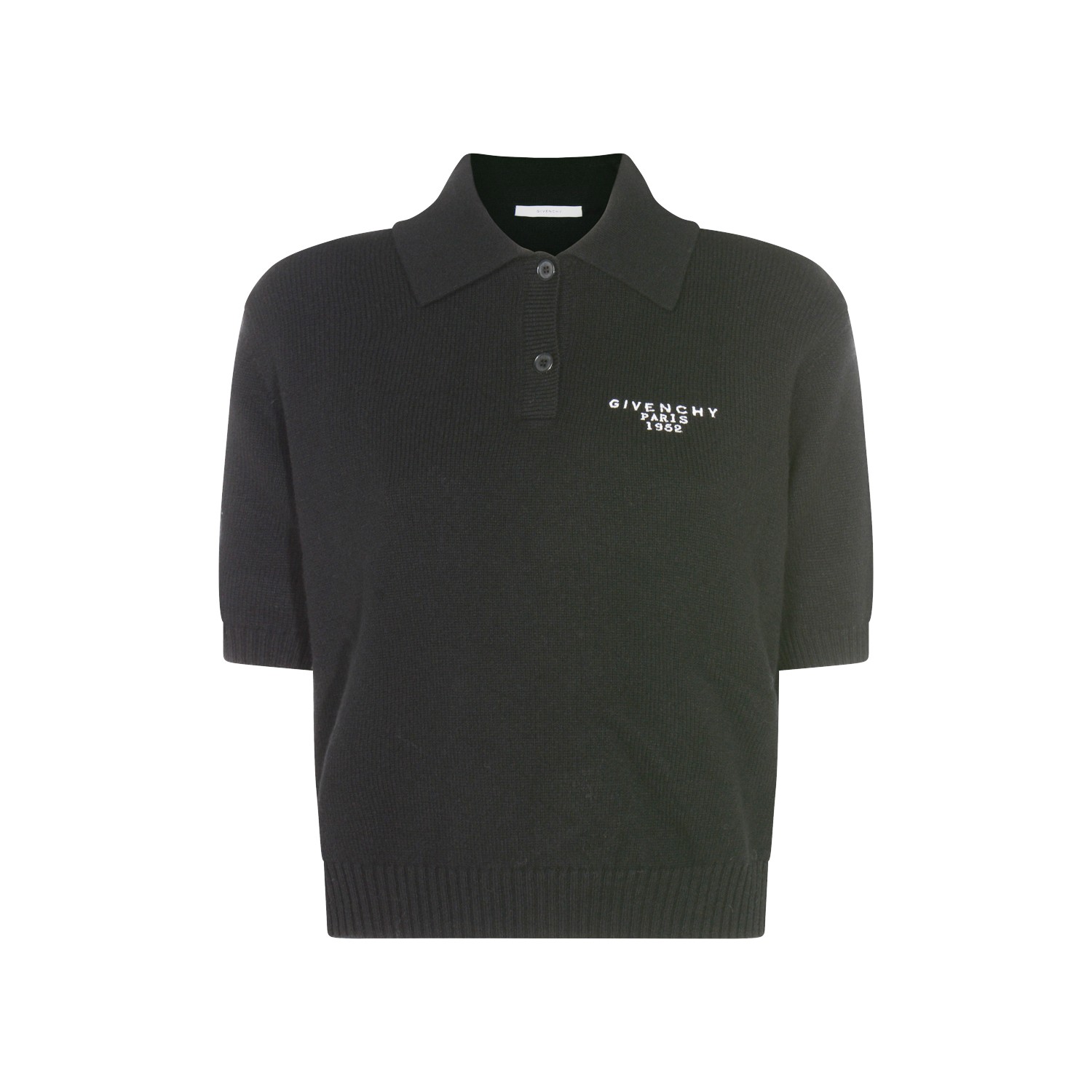 Black wool top from Givenchy featuring classic polo shirt collar, short sleeves, heart logo and cropped.