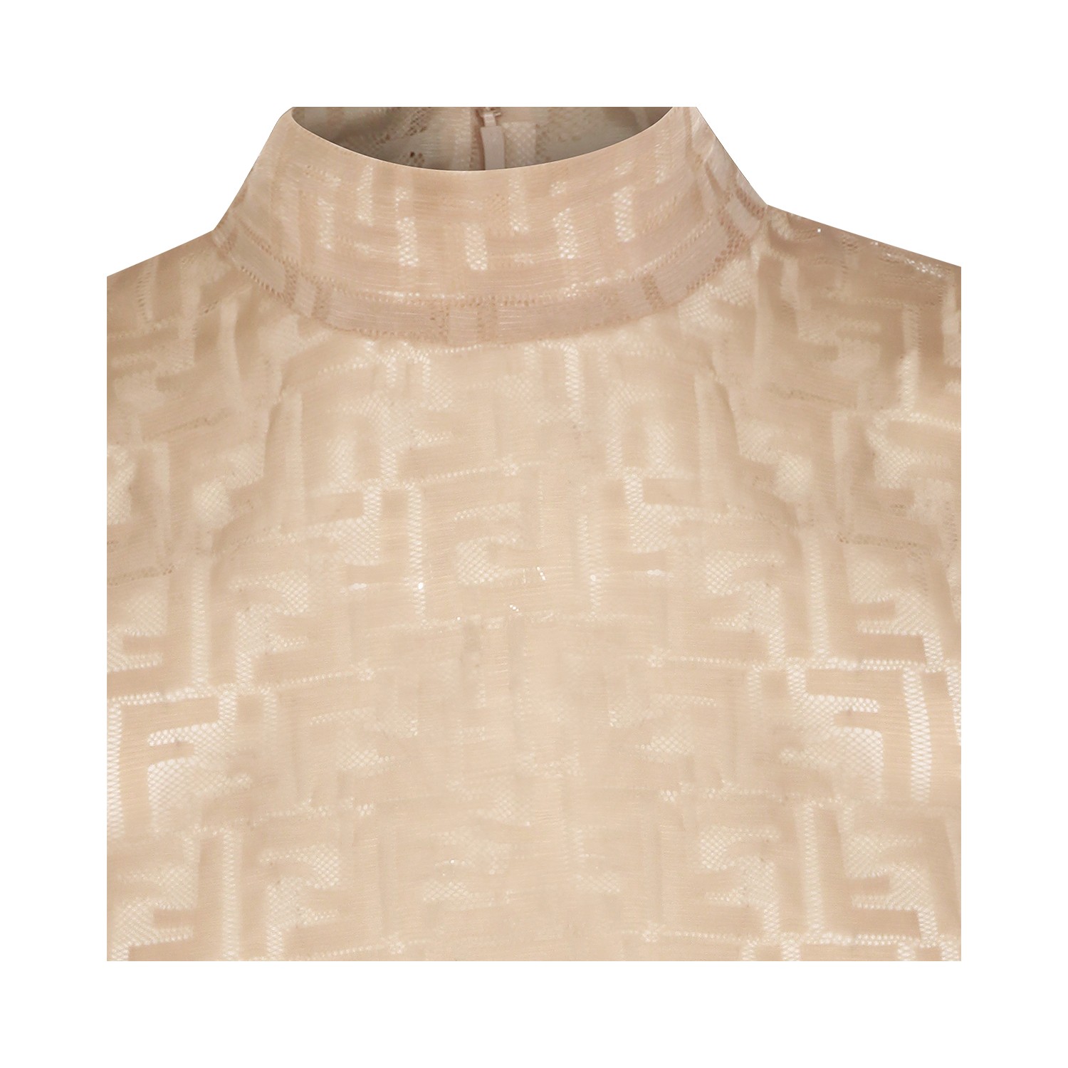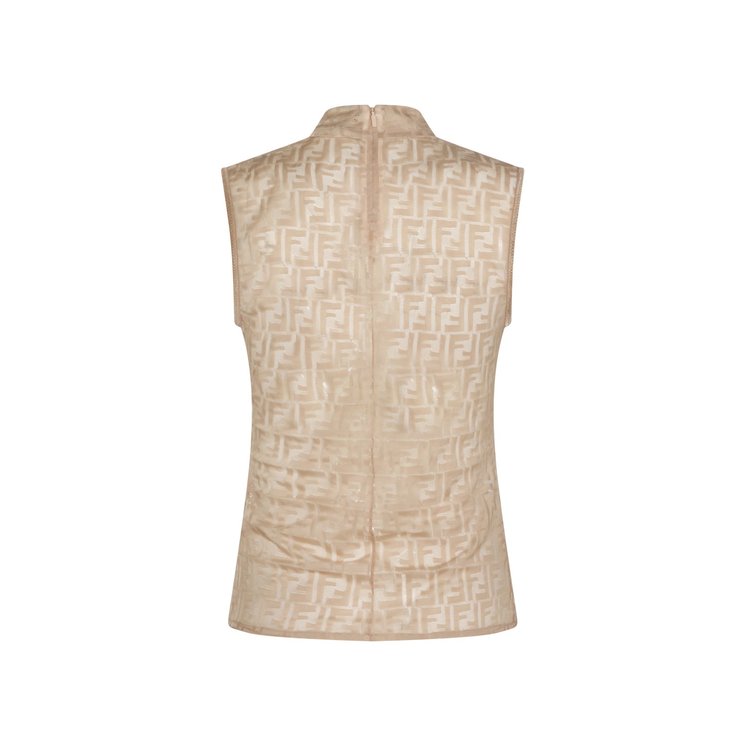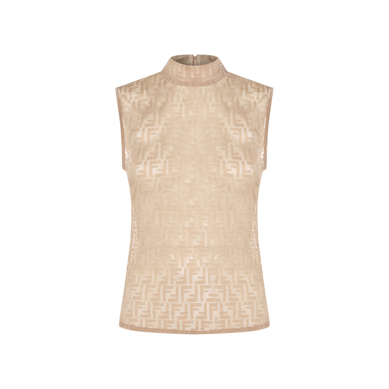 Mou top from Fendi featuring high neck, sleeveless, transparency, all over monogram and regular vestibility.